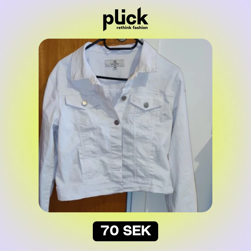 Säljer en snygg vit jeansjacka från Flash Jeans i storlek M. Jackan har en klassisk design med knappar framtill och två bröstfickor med knappdetaljer. Den är långärmad och perfekt för vår och sommar. Jackan är i bra skick och redo för nya äventyr!
