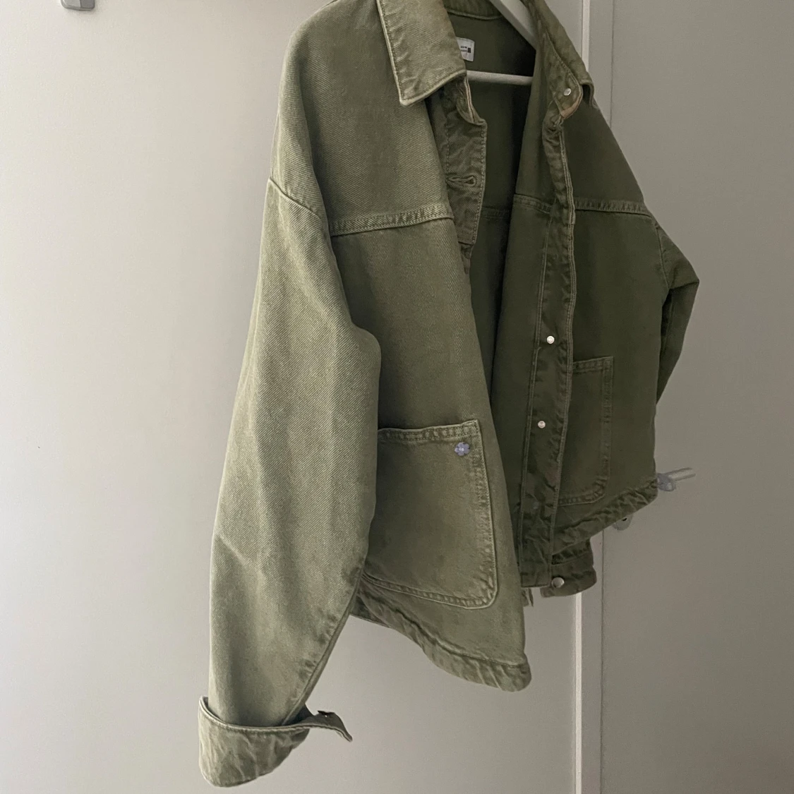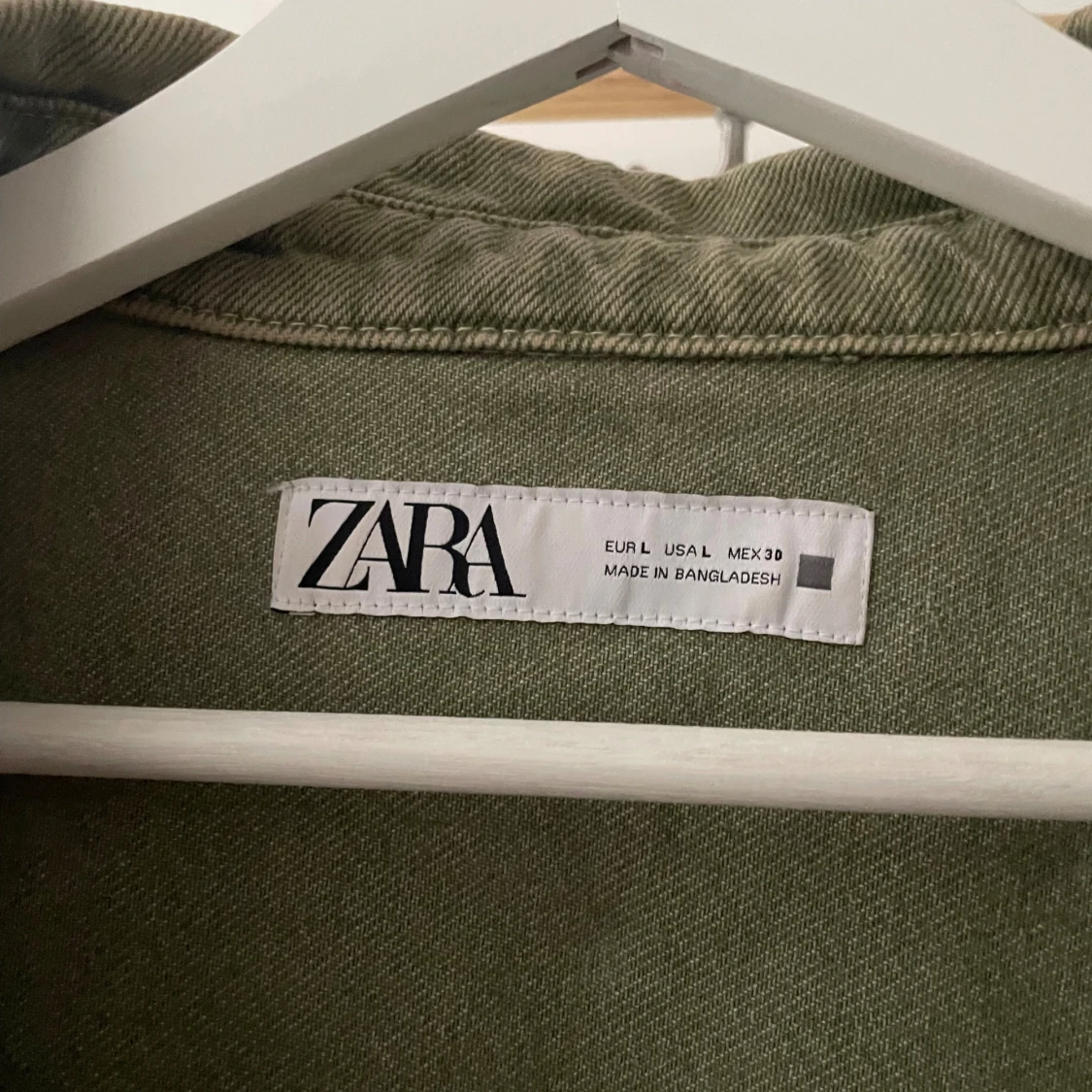 säljer denna populära olivgröna jeansjacka från zara. jackan är i large då zaras storlekar är så extremt små, passar mig som vanligtvis har s/m. jackan är i fint skick, inga slitningar. 💕