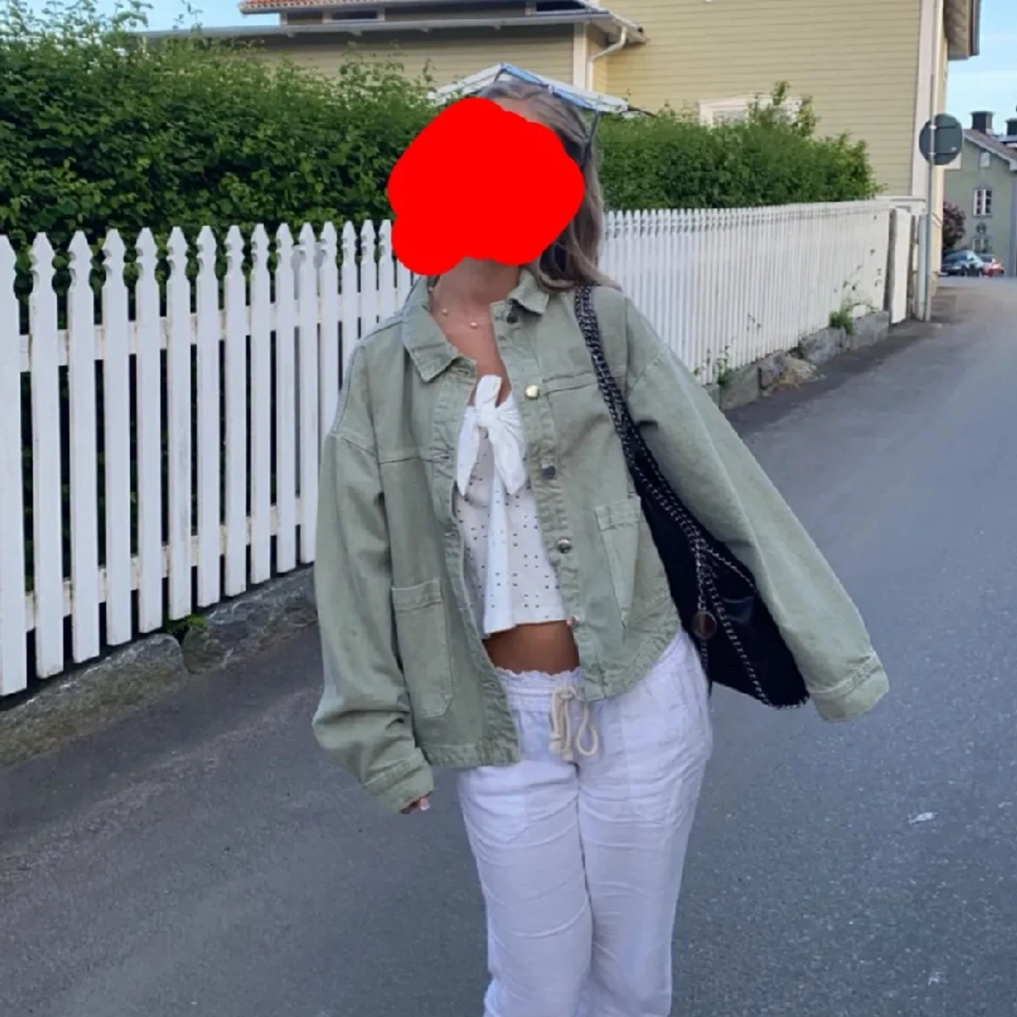 Säljer min gröna jeansjacka från zara! Knappt använd och är i bra skick.