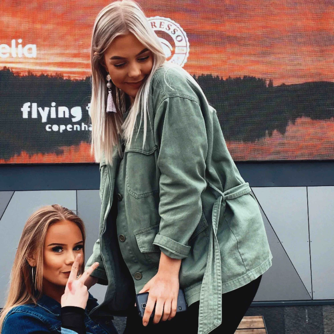 Militär grön jeans jacka i storlek M men den är lite oversized.