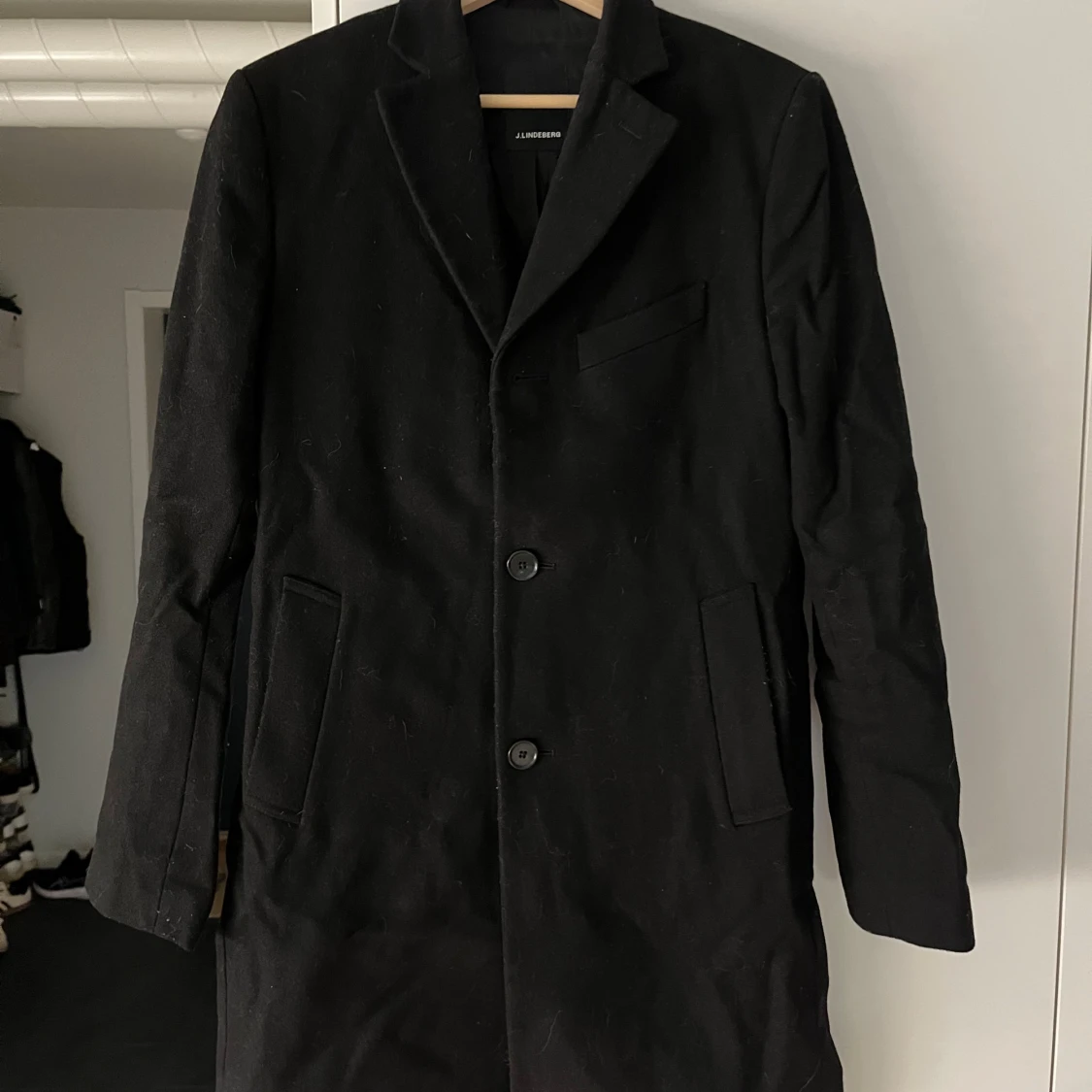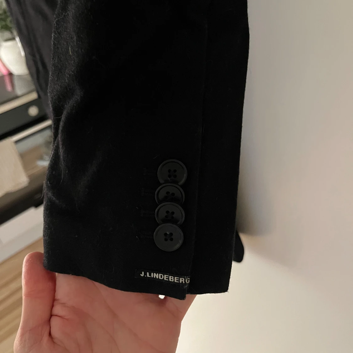 Stilren svart rock från J.Lindeberg med klassisk krage, två knappar framtill och fyra dekorativa knappar vid ärmslutet. Kavajen har raka fickor och en bröstficka, perfekt för dig som gillar en clean och modern look. Materialet är mjukt och känns lyxigt.