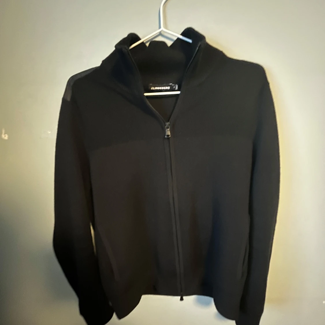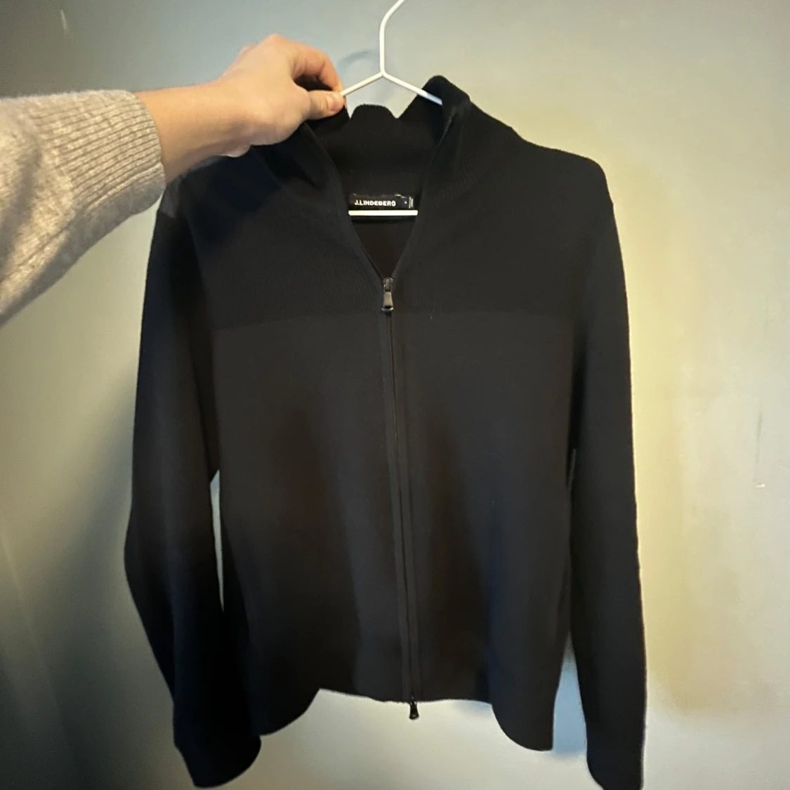 Svart cardigan från J.Lindeberg. Tröjan har dragkedja framtill och är långärmad. Snygg och stilren design med diskreta axelpartier i annat material.