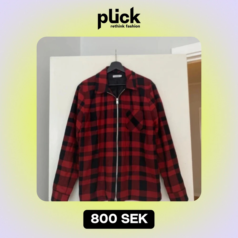En snygg och stilren skjorta med rött och svart rutmönster. Den har en dragkedja framtill och en ficka på bröstet. Skjortan är perfekt för både vardag och fest.