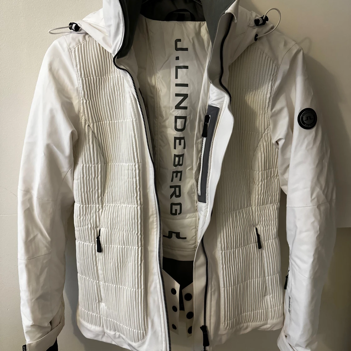 Snygg vit skidjacka från J.Lindeberg med svarta detaljer och gråa fickor på insidan. Jackan har huva, dragkedja framtill och flera praktiska fickor. Perfekt för dig som vill ha en stilren och funktionell jacka till vintern.