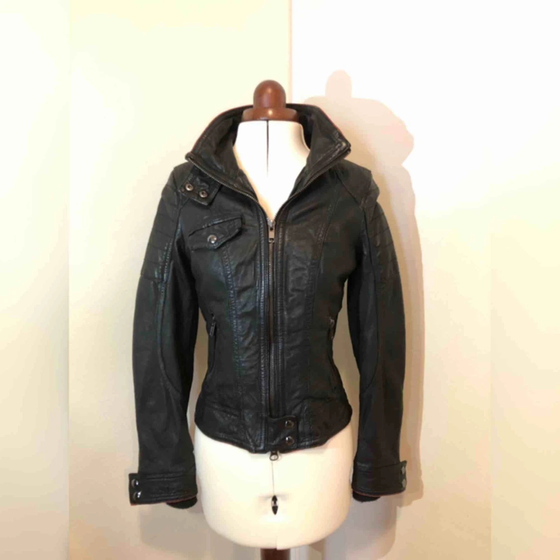 Skitsnygg skinnjacka från Jofama. Aldrig använd. En avtagbar krage medföljer (se bild 2) för kallare väder! Köpt för 1999kr.