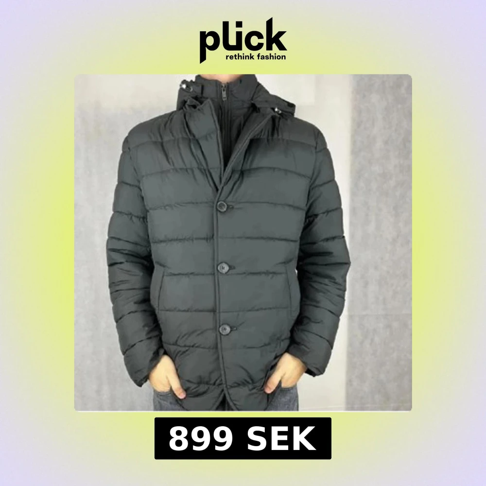 Snygg grå pufferjacka med både dragkedja och knappar framtill från John Henric. Jättefint skick. Jackan har en hög krage och en avtagbar huva, perfekt för kyliga dagar. Den quiltade designen ger extra värme och stil. Säljer den då den tyvärr var för stor för mig.