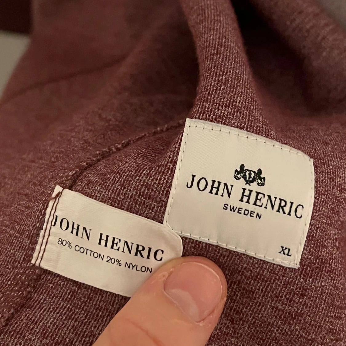 John Henric kavaj i 80% bomull 20% nylon i storlek XL men sitter snarare som en något större L. En knapp sitter lite löst men det kan man fixa lätt och darför jag även säljer så billigt. Nypris 2500kr