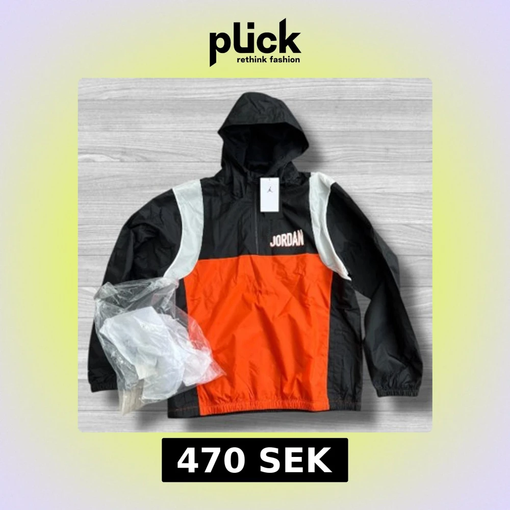 Jordan vindjacka i svart, orange och vitt med huva och dragkedja. Stor logga på ryggen och JORDAN-tryck på bröstet. Jackan har meshfoder och elastiska muddar. Perfekt för dig som vill sticka ut med sportig streetstyle.