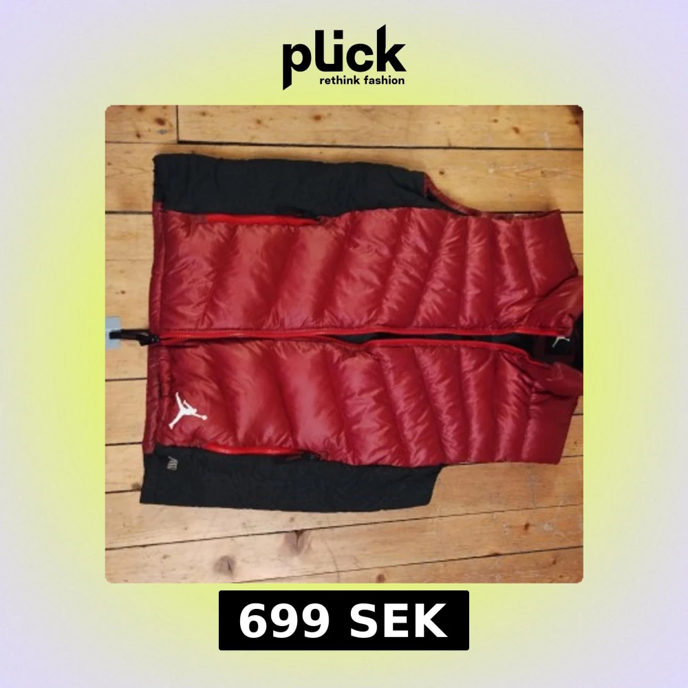 Snygg röd dunväst från Jordan med svart kontrastparti och ikonisk Jumpman-logga på bröstet. Västen har quiltad design, hel dragkedja och detaljer med mönstrad svart textil. Perfekt för att hålla värmen och se sportig ut.