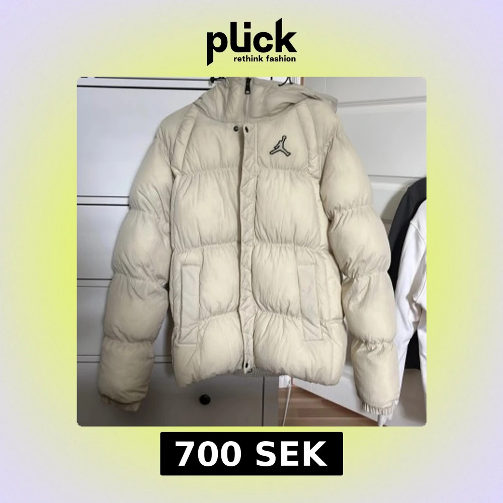 Säljer en fet beige pufferjacka från Jordan med ikoniska Jumpman-loggan på bröstet. Jackan har stor huva, dragkedja och två fickor framtill. Perfekt för kalla dagar när du vill hålla stilen och vara varm. Oversized vibe och riktigt mjuk känsla. Storlek S men passar större. Köpt från JD sports. Nästan aldrig använd.