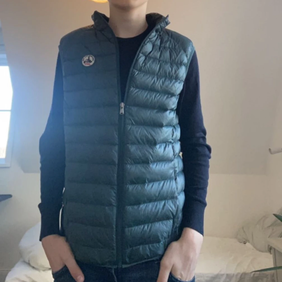 En stilren och perfekt Jott väst till sommaren. Västen är storlek s. Modellen är 180cm lång. Nypris 1600. Vårt pris 550.