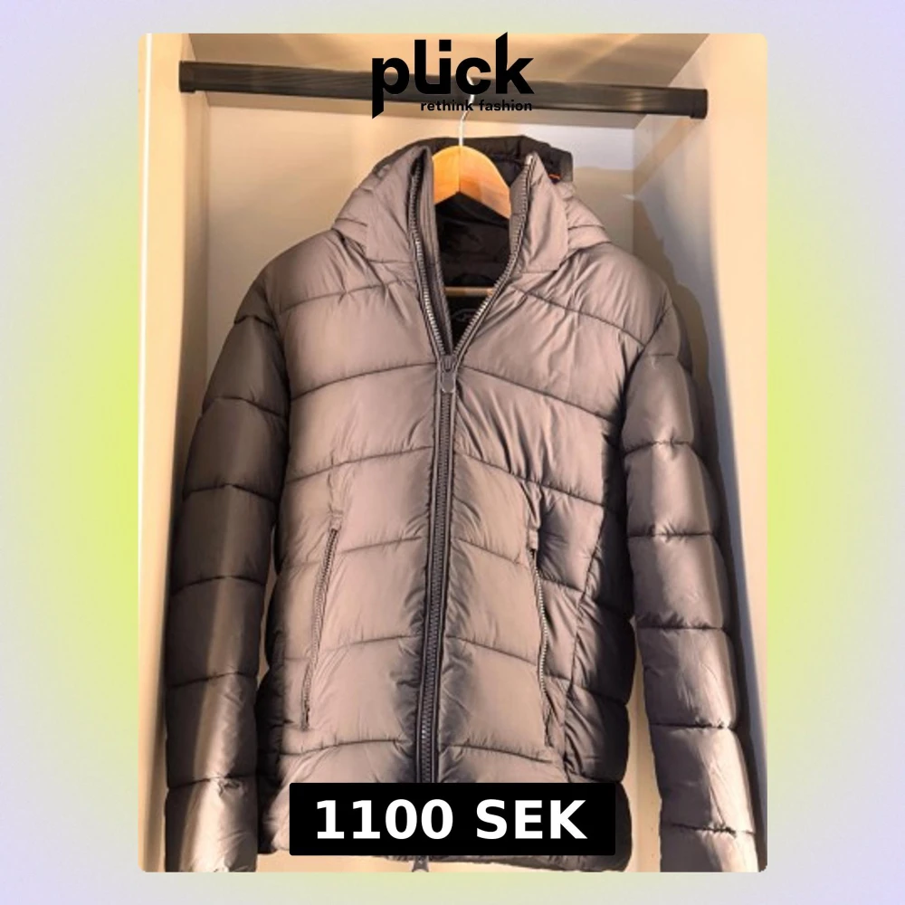 Säljer en grå pufferjacka från Save The Duck i storlek XS. Jackan har huva, två fickor med dragkedja och är tillverkad i återvunnen polyester med Plumtech-fyllning. Snygg, stilren och perfekt för kyliga dagar.