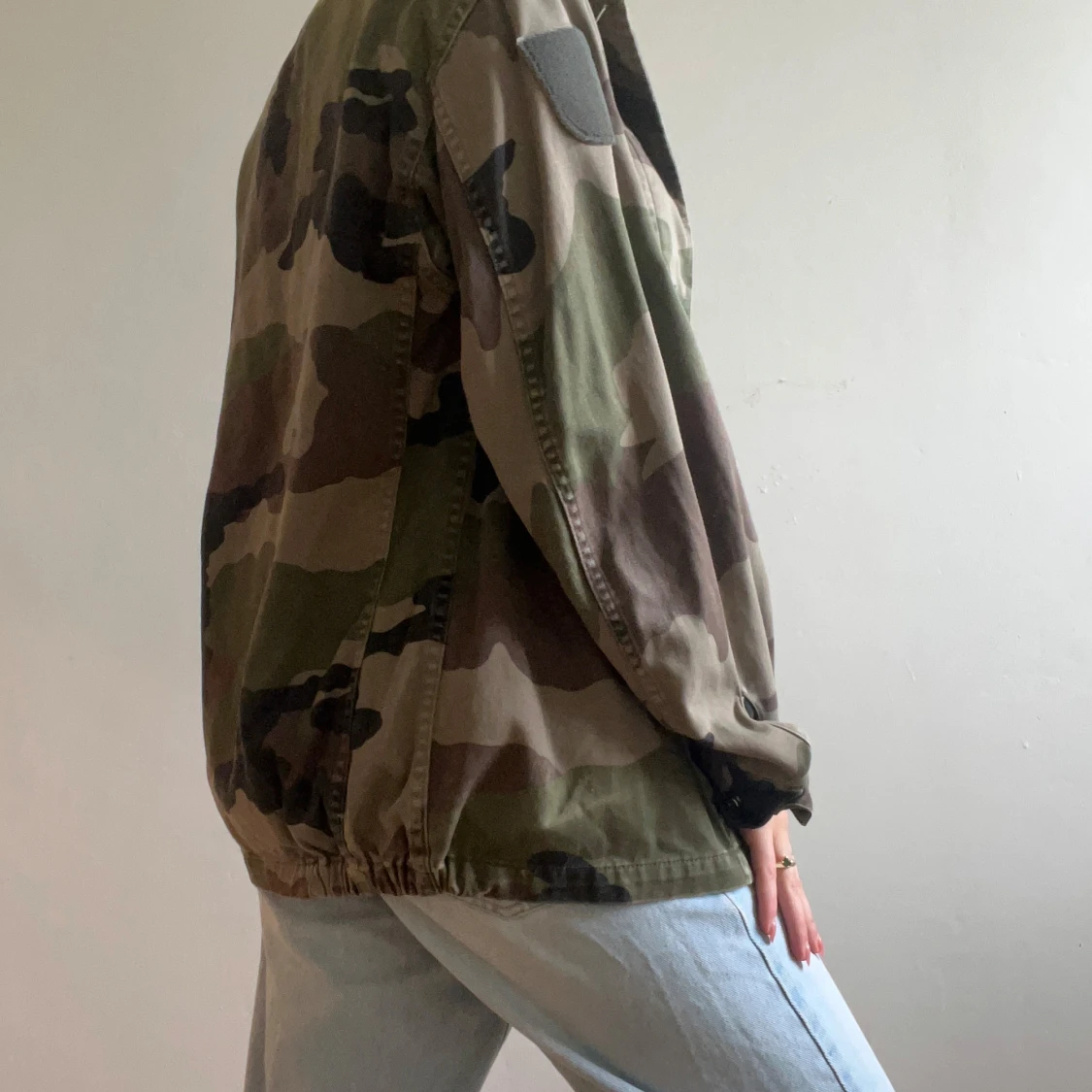 Stilren klassisk camojacka. Jackan har långa ärmar och elastisk nederkant bak för en avslappnad look. Perfekt för dig som gillar streetstyle och utility-vibe. Passar storlek xs-m