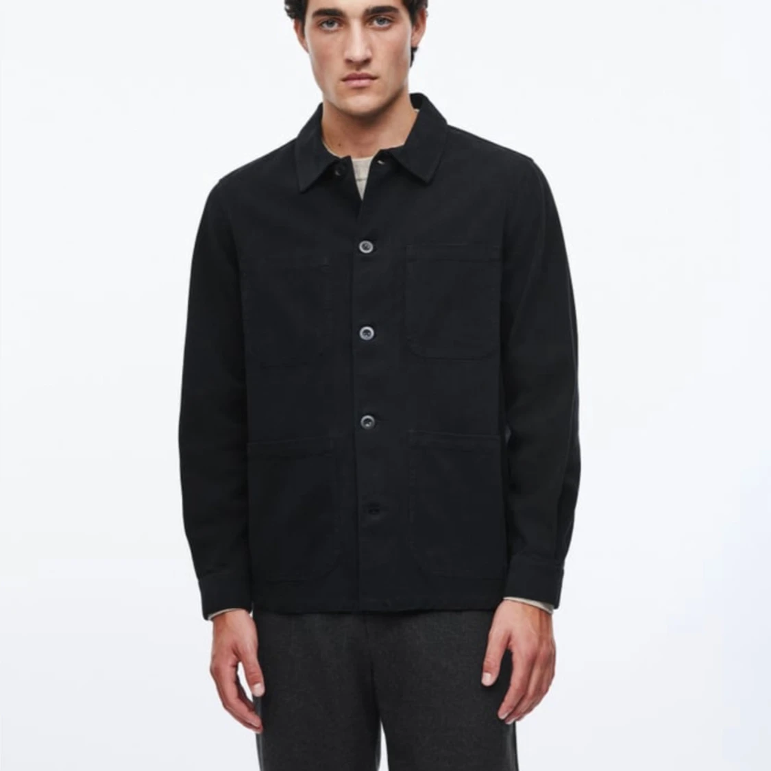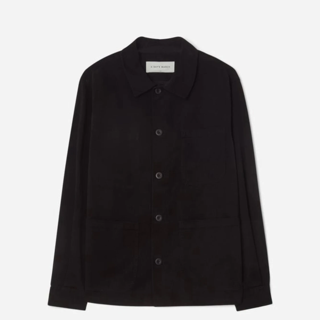 Stilren svart overshirt från A Day's March med klassisk krage, knäppning framtill och tre praktiska fickor. Jackan är tillverkad i mjuk bomull och har en rak passform som funkar till många olika outfits.