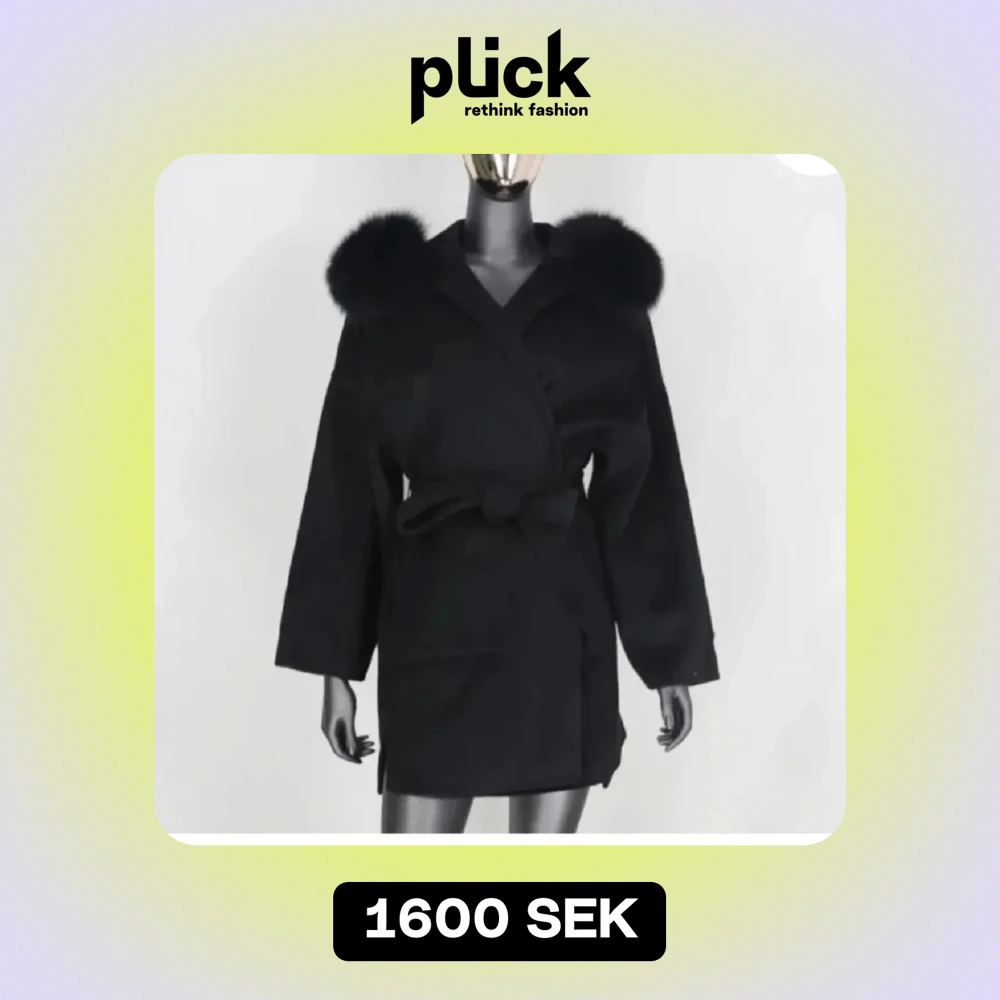 Kappa med äkta päls o väldigt fint skick. Köpt för 2800kr på Instagram men kontot finns idag inte kvar. Säljes för 1400 men pris kan diskuteras. Storlek S men funkar på XS, M då man knyter band runt midjan.