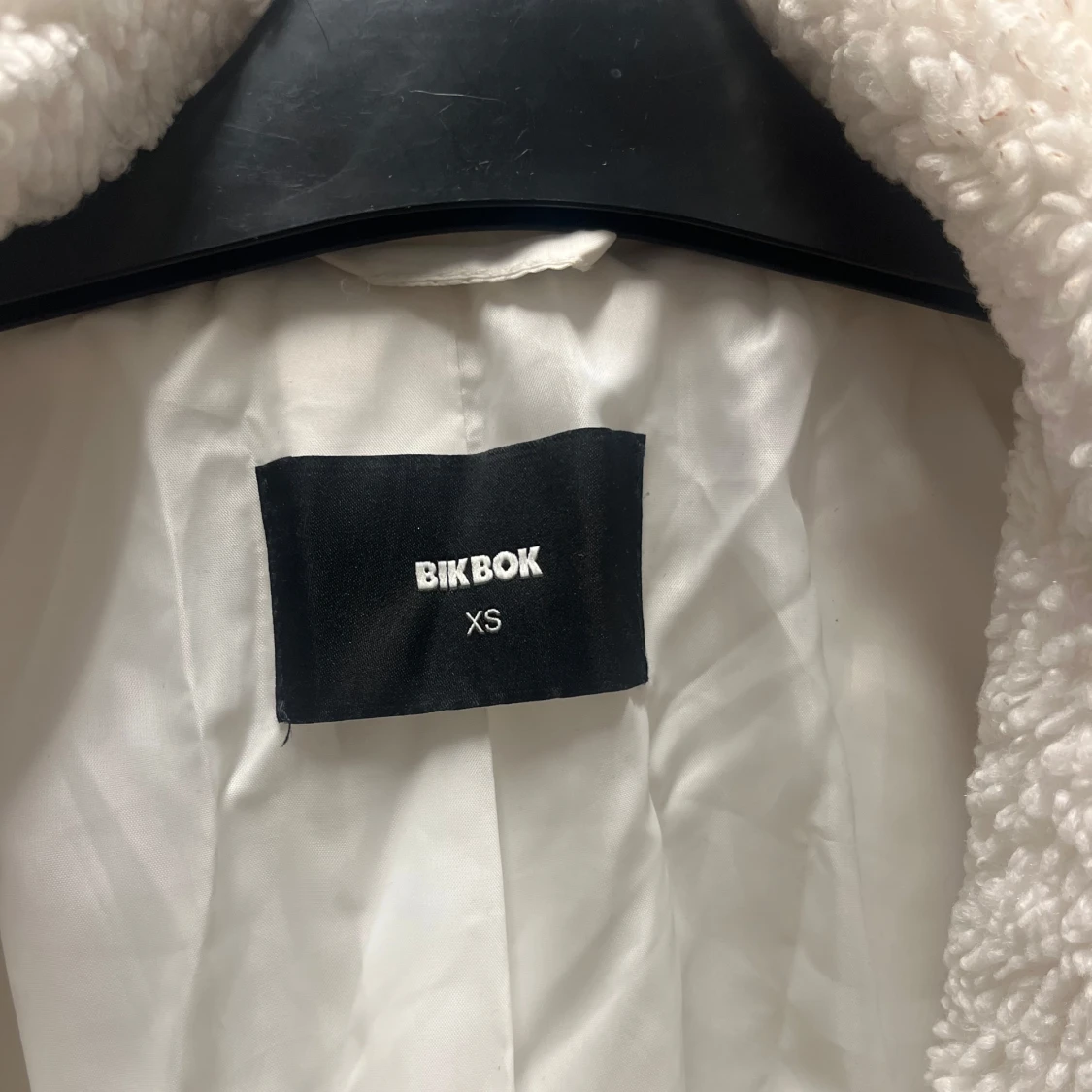 Mysig vit teddyjacka från Bik Bok i storlek XS. Perfekt för kyliga dagar med sin fluffiga och varma design. Jackan har en klassisk krage och långa ärmar, vilket gör den både stilren och bekväm. Ett måste för höst- och vintergarderoben! 🧥❄️