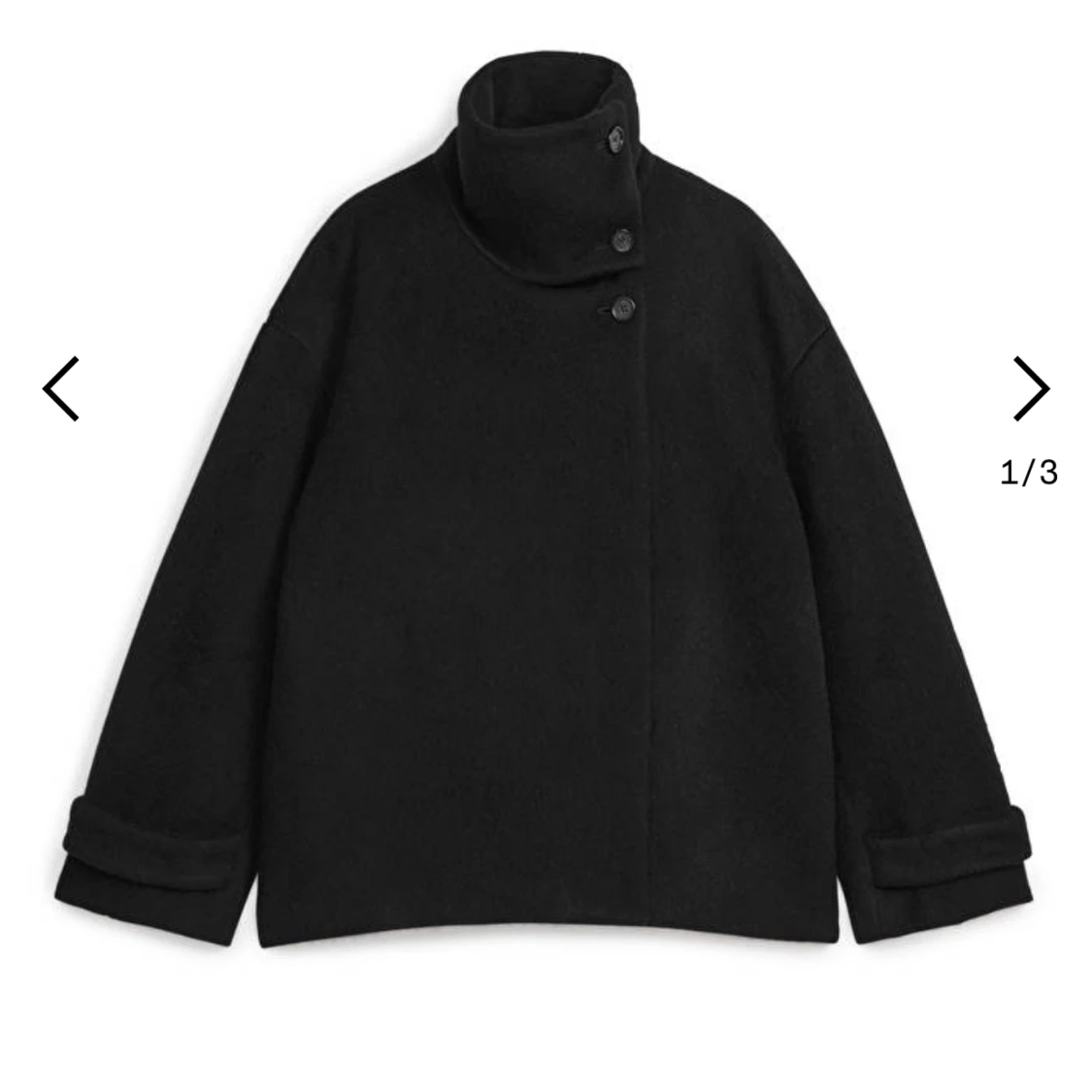 Jätte snygg kort kappa från arket. Köpt förra året men inga defekter eller liknande. Kom privat för bilder. Säljer för 1200 men kan byta den mot en likadan jacka i svart, strl 34 eller 36 (se sista bilden)