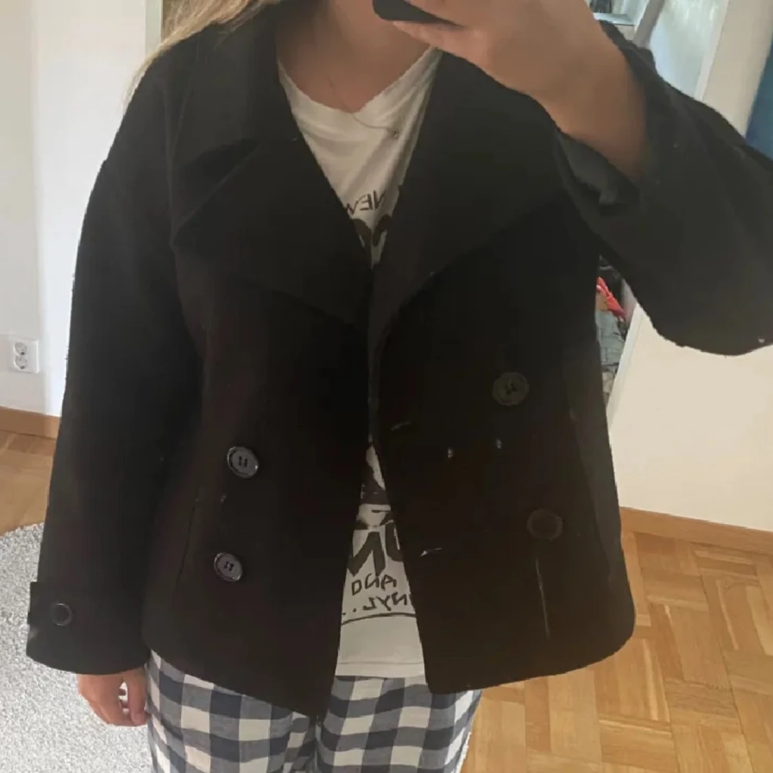 Jättefin kappa från design by si. Jättebra skick. Färgerna är svart.