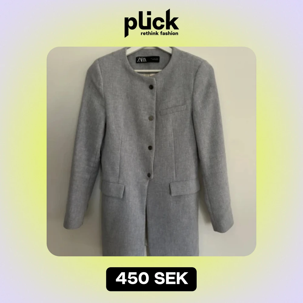 Mycket lite använd, ljusgrå melerad, figursydd med nätta axelkuddar och snygg urringning i hals. Köpt på Zara för 999;-