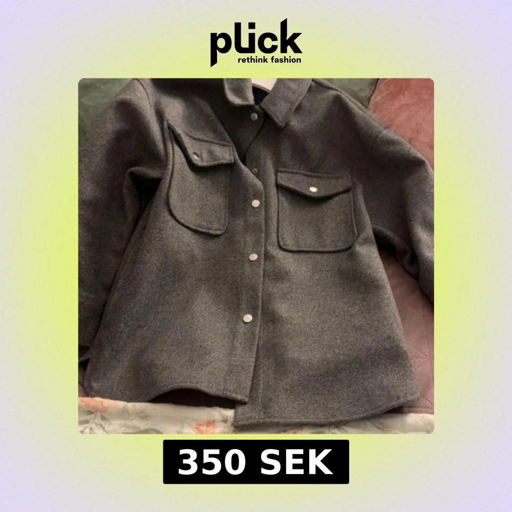 Säljer en stilren grå kappa med klassisk krage och stora bröstfickor med lock. Jackan har tryckknappar framtill och är tillverkad i ett mjukt ullmaterial. Perfekt för lager-på-lager och chill stil under höst och vinter.