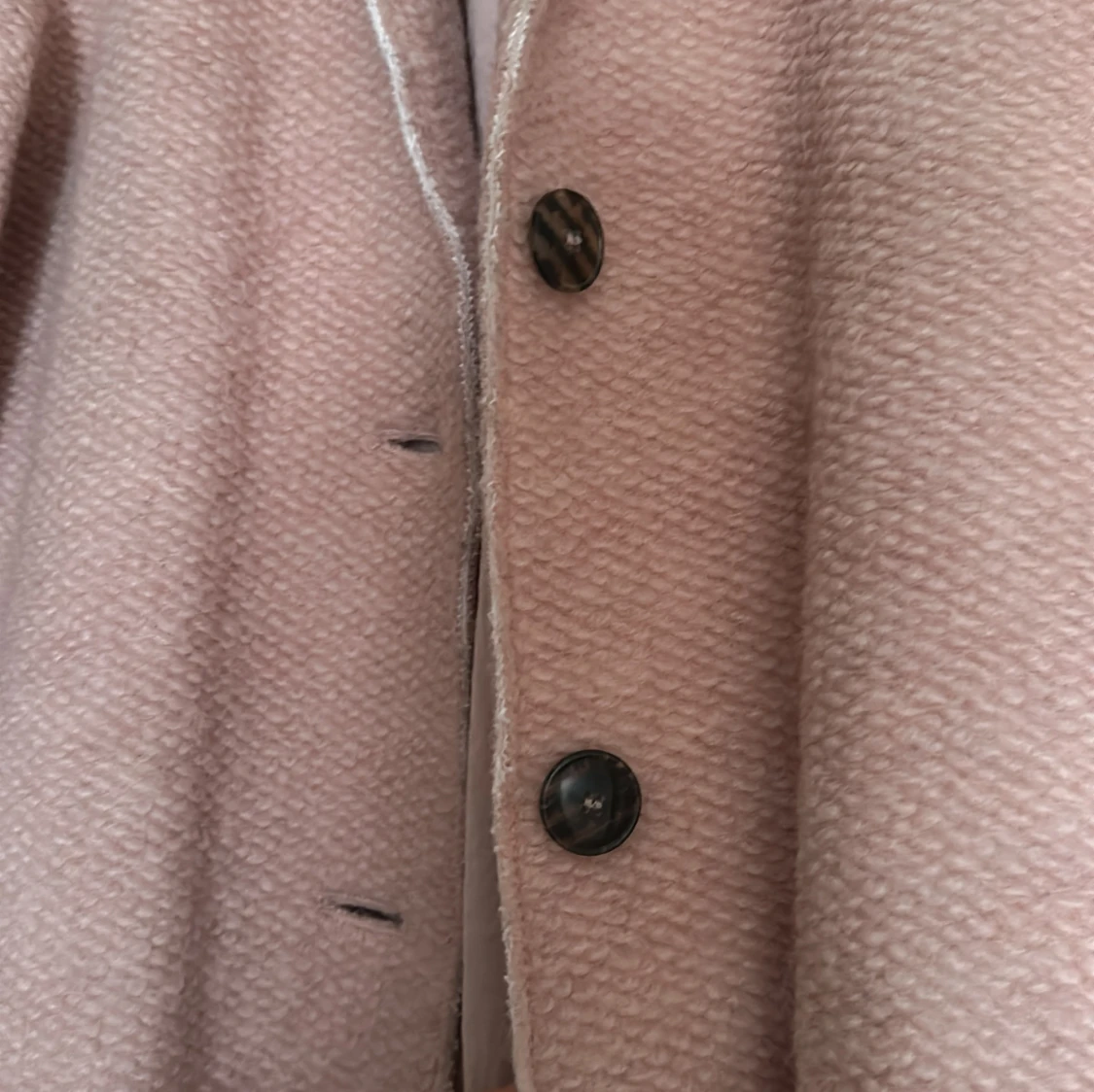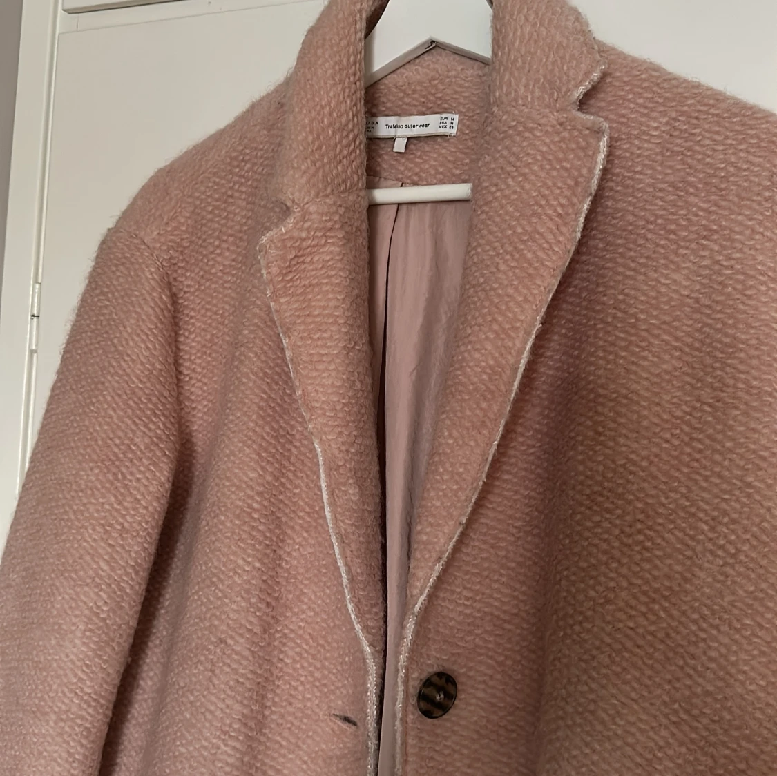 Säljer en superfin rosa kappa från Zara Trafaluc. Den har en mjuk, strukturerad yta, klassisk krage och knäpps med två knappar framtill. Fodrad insida och två fickor på sidorna. Perfekt för dig som vill ha en stilren och mysig look.