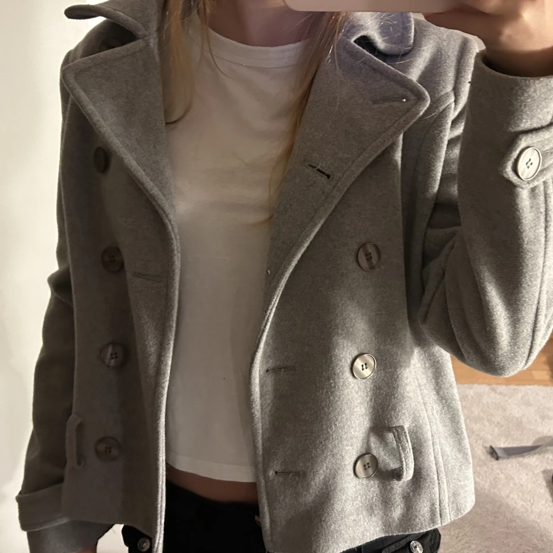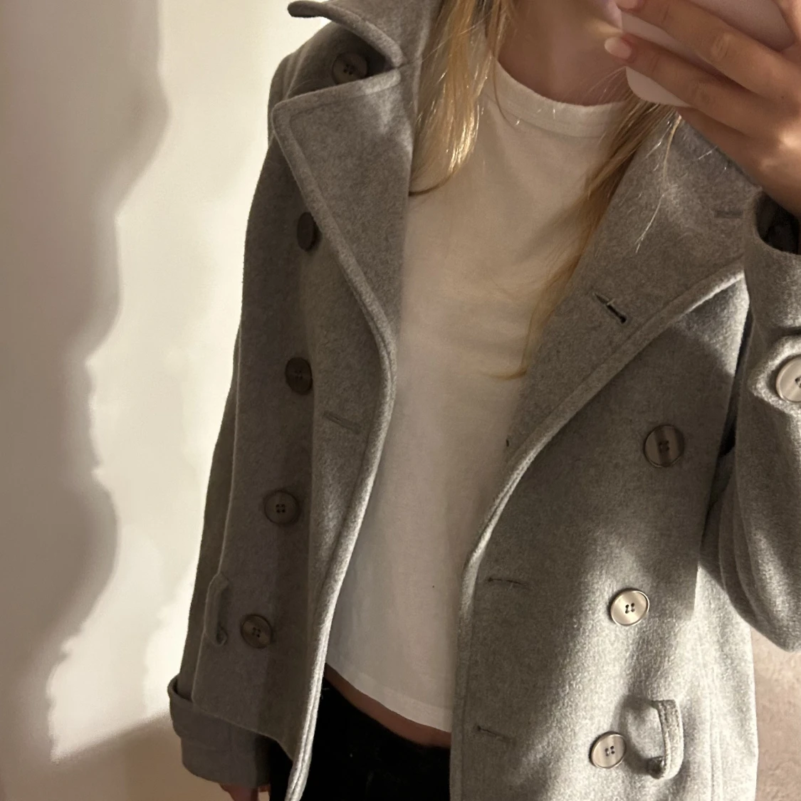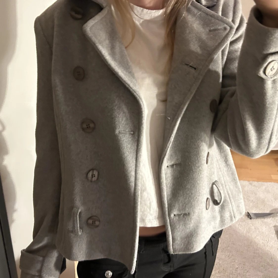 Knappast använd super bra skick , har innerfickor. 75% ull , 20% polyester, 5% kashmir. Pruta på
