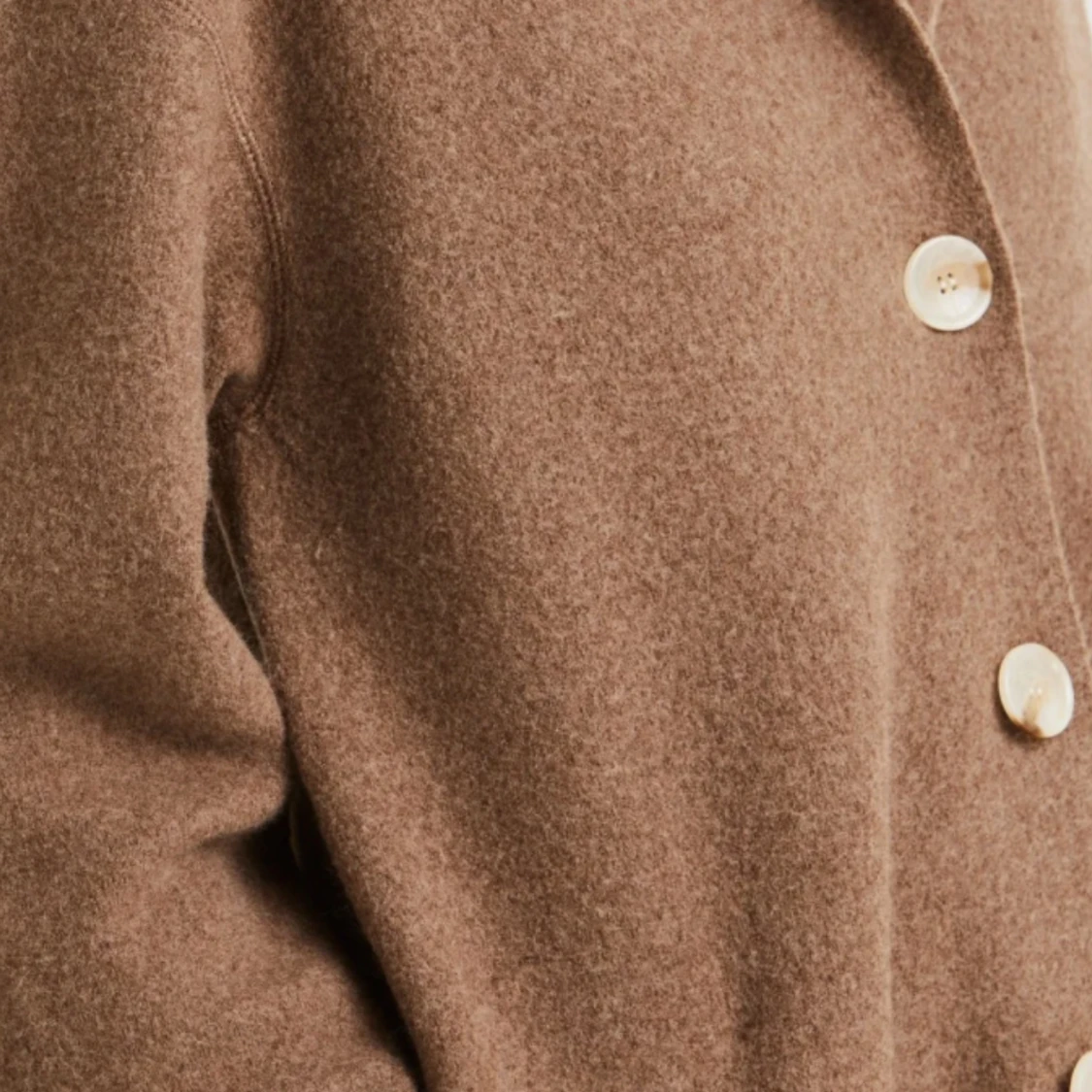 Dagmar Kappa. Material: 100% mulesing fri merinoull. Brun/beige. Använd ett fåtal gånger. Köparen står för frakten. Fler bilder kan skickas. Nypris: 5000:-