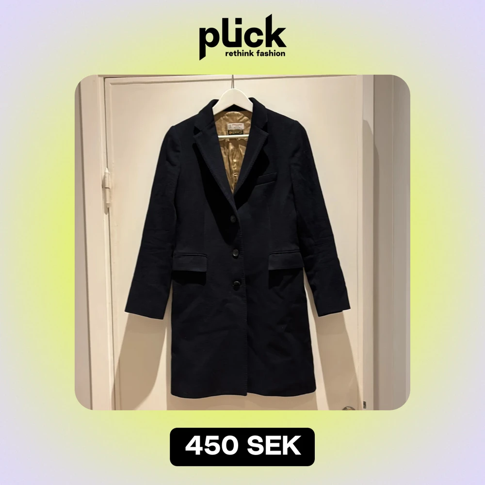 Klassisk kappa i hög kvalitet, 100% fin ull. Mörkblå med fickor. Innerfoder i 100% viskos. Tillverkad i Italien. Mycket bra skick.