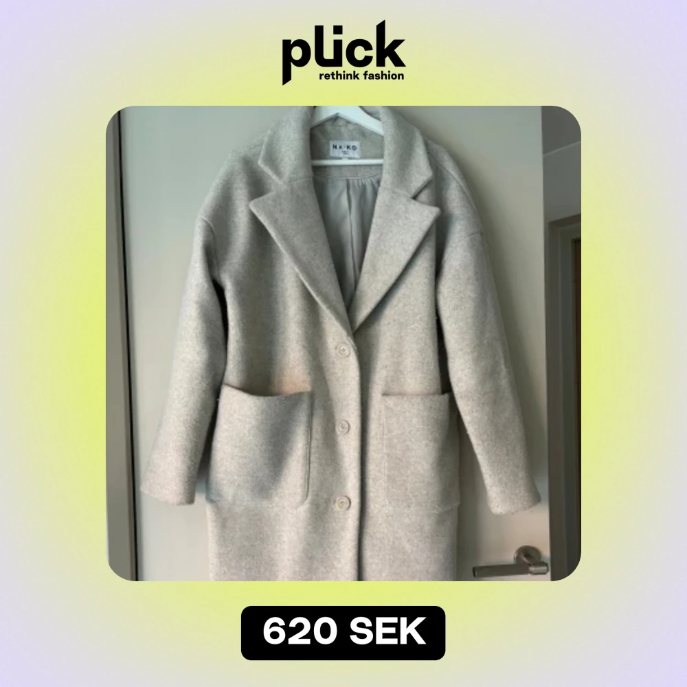 Lång kappa i ull från NA-KD, använd 5 gånger. I storlek 38. En grå, beige färg