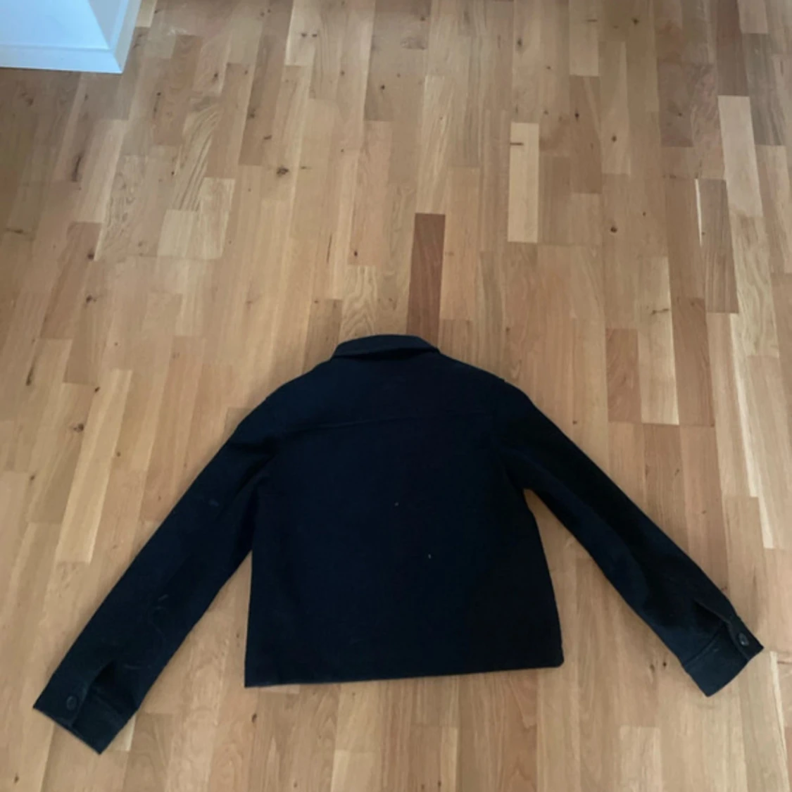 Stilren svart overshirt med klassisk krage och stora fickor framtill. Jackan har knäppning med knappar hela vägen och långa ärmar med knappdetalj vid ärmslut. Perfekt för lager-på-lager och enkel att matcha till olika outfits.
