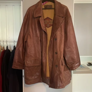 Medelstor kappa som tål det mesta väder i äkta läder