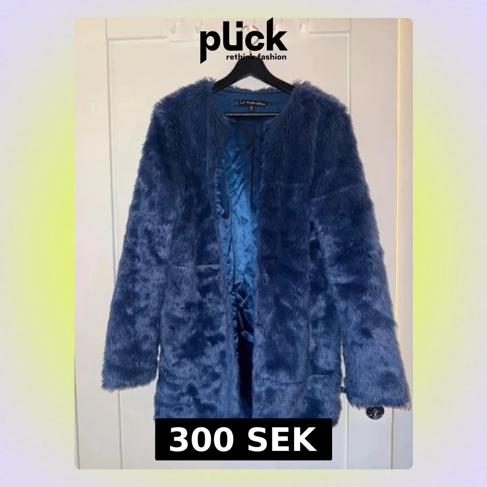Säljer en fluffig blå pälsjacka från For Love & Lemons i storlek M. Jackan har lång ärm, är helfodrad och har en snygg, enkel design utan krage. Perfekt för dig som vill sticka ut med en cool och mysig look.