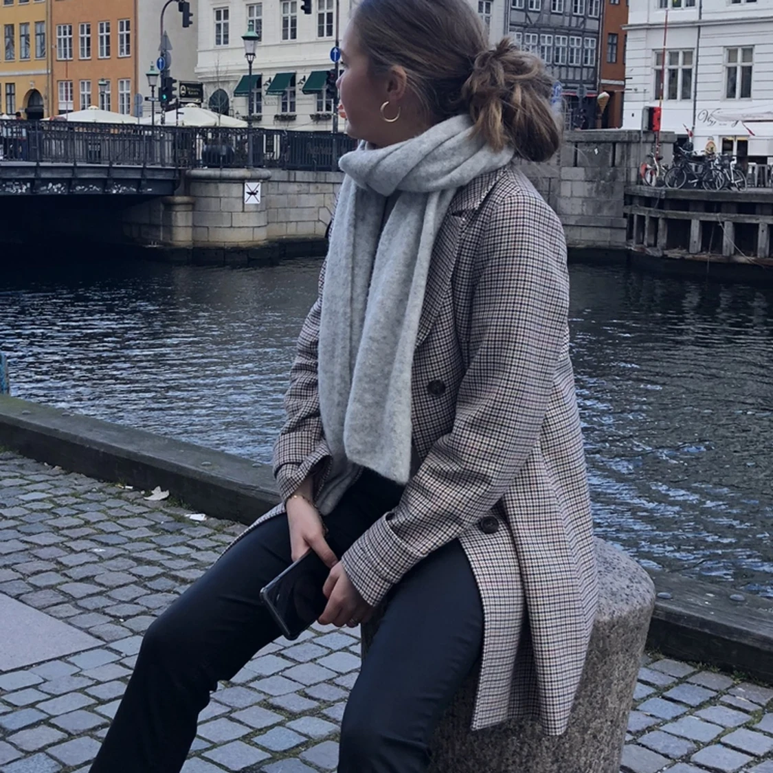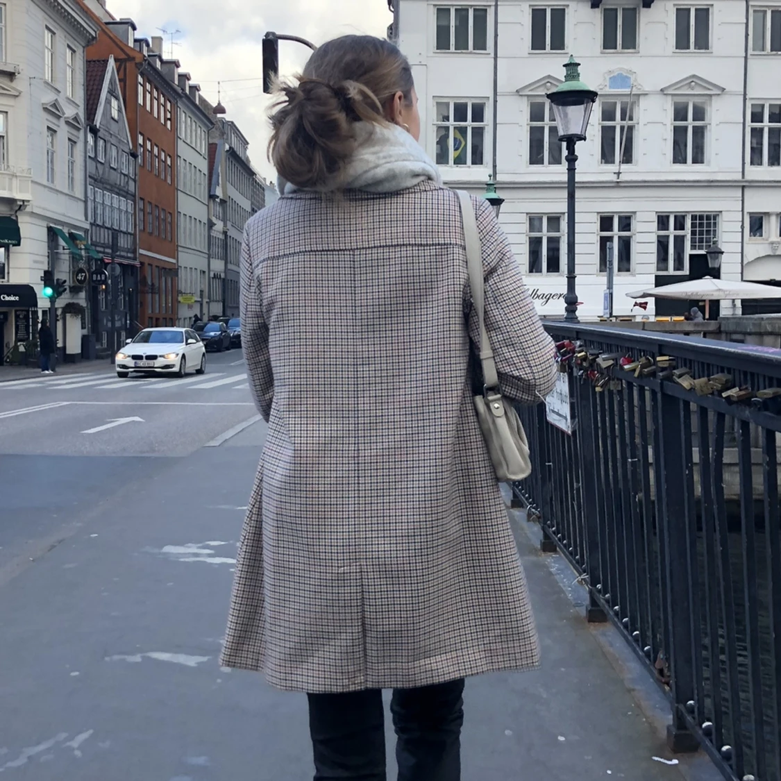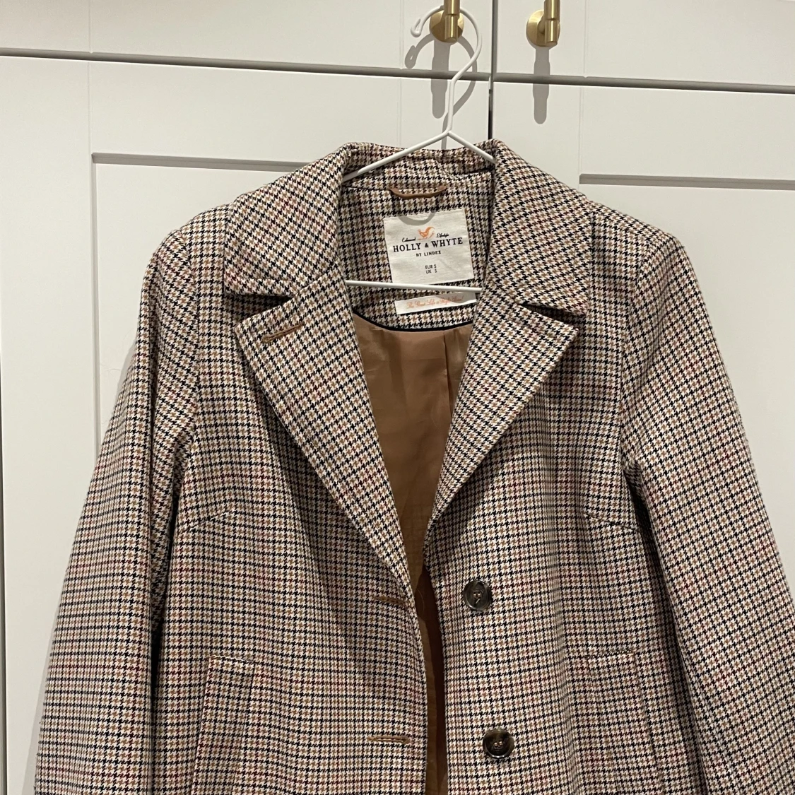 Medellång rutig kappa i strl S. Kappn är i fint skick och har inga defekter. Färgerna går i blått,rött,brunt och vitt.