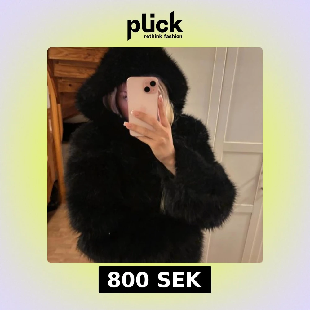 Säljer en svart, fluffig och croppad pälsjacka med huva. Jackan har långa ärmar och en riktigt mjuk känsla, perfekt för att sticka ut. Stängs med dragkedja framtill och har en oversized vibe. Superfin till kalla dagar när du vill vara extra stylish.