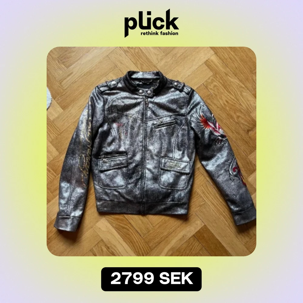 Limited edition skinnjacka från Ed Hardy med diameter, broderier och coola detaljer på all metall. Storlek L men passar S-M