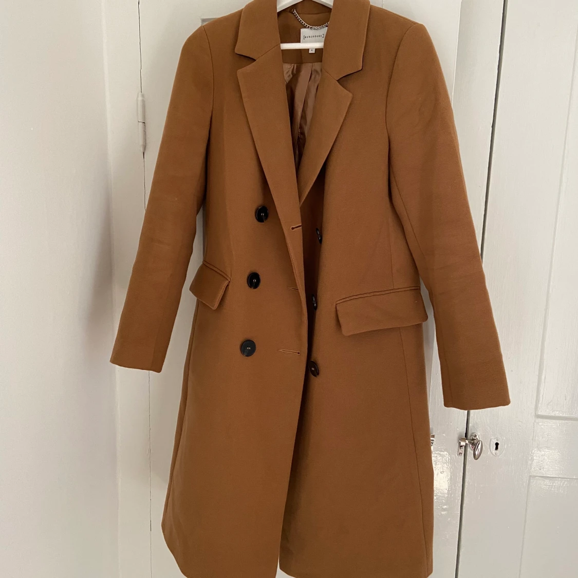 Brun lång kappa med knappar i väldigt bra skick. Stl 8 men skulle säga mer som en 36 🤎