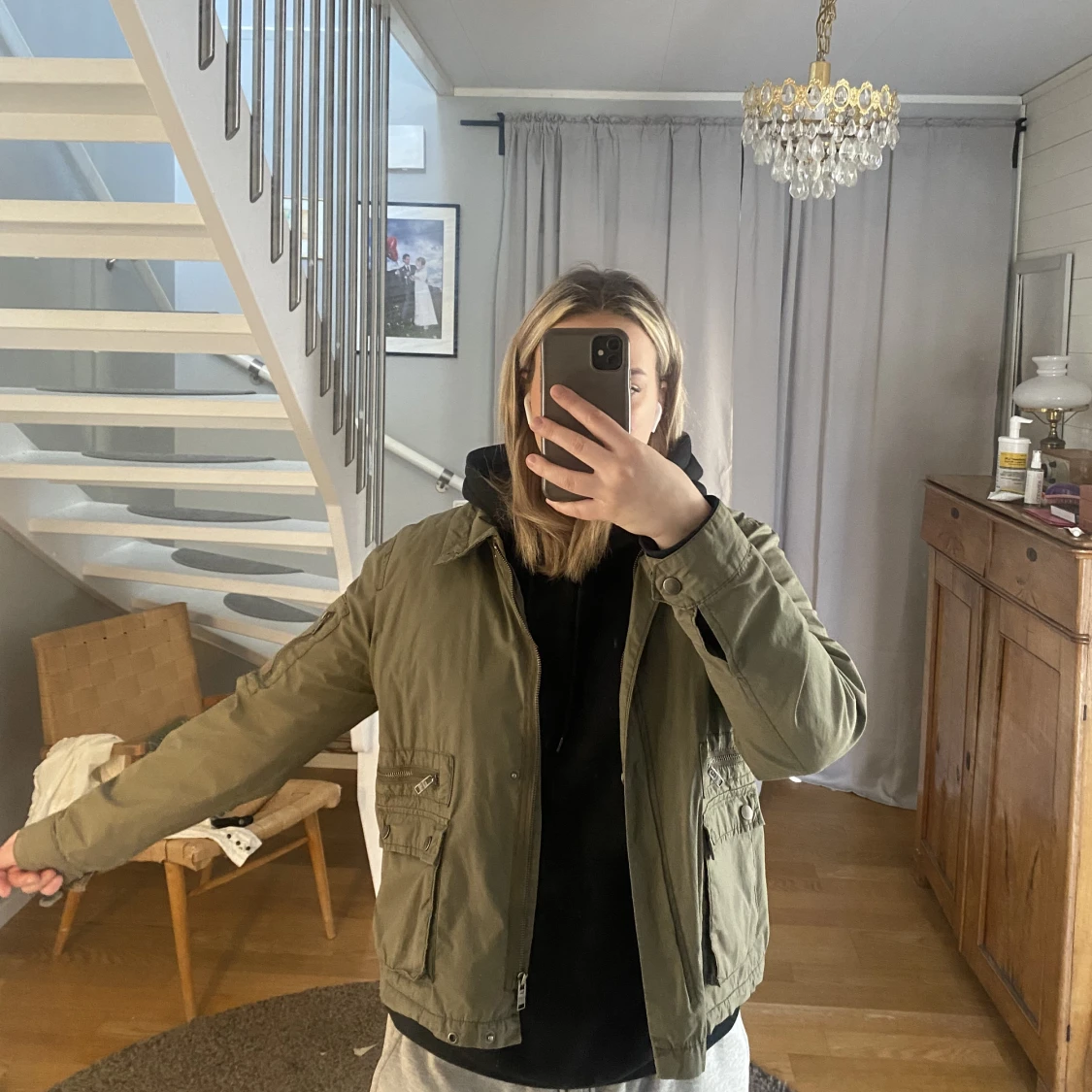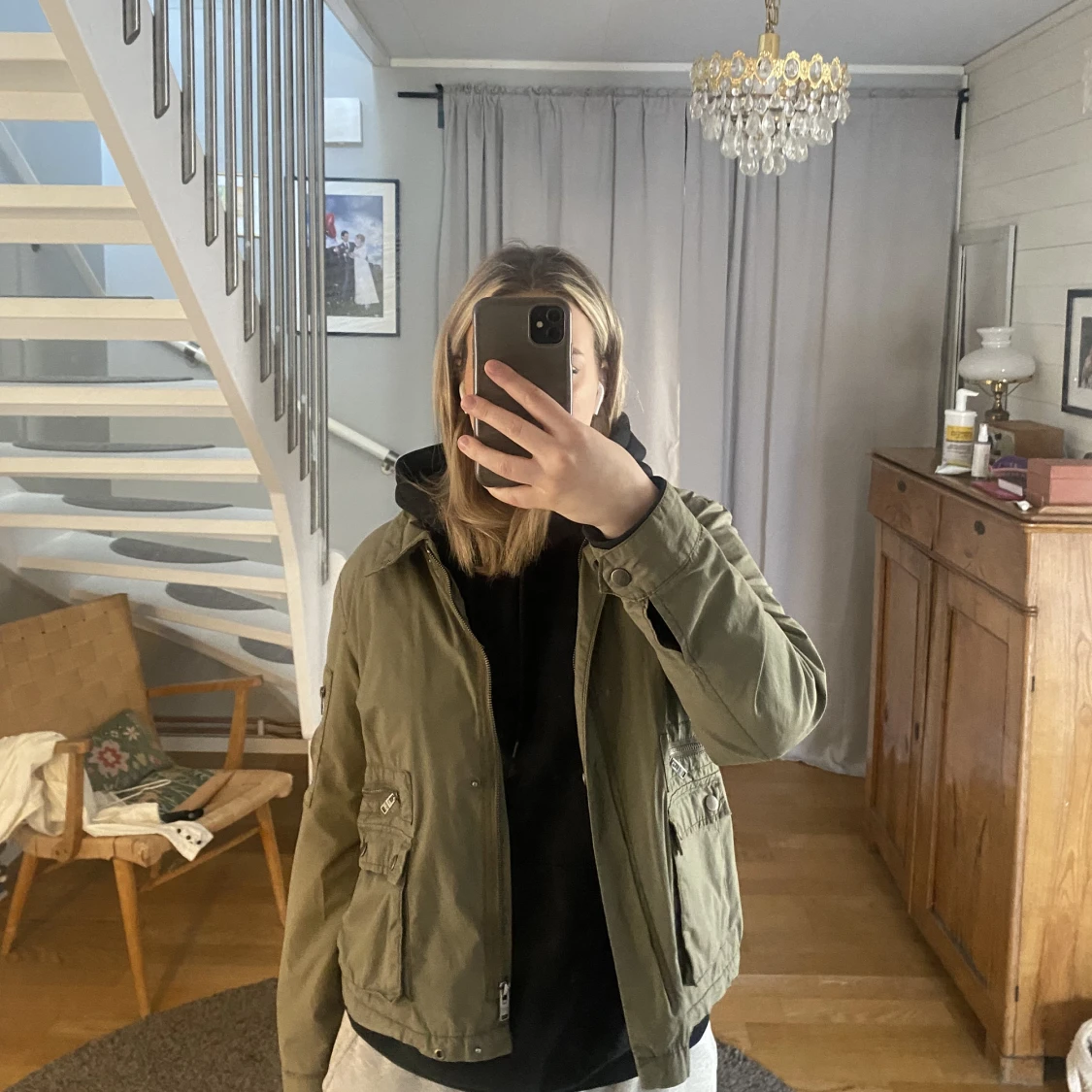 Jättefin grön/oliv vårjacka. Perfekt varm till våren! Står L i men skulle säga att den är stl 38. Fint skick. Säljer då jag har för mycket jackor.