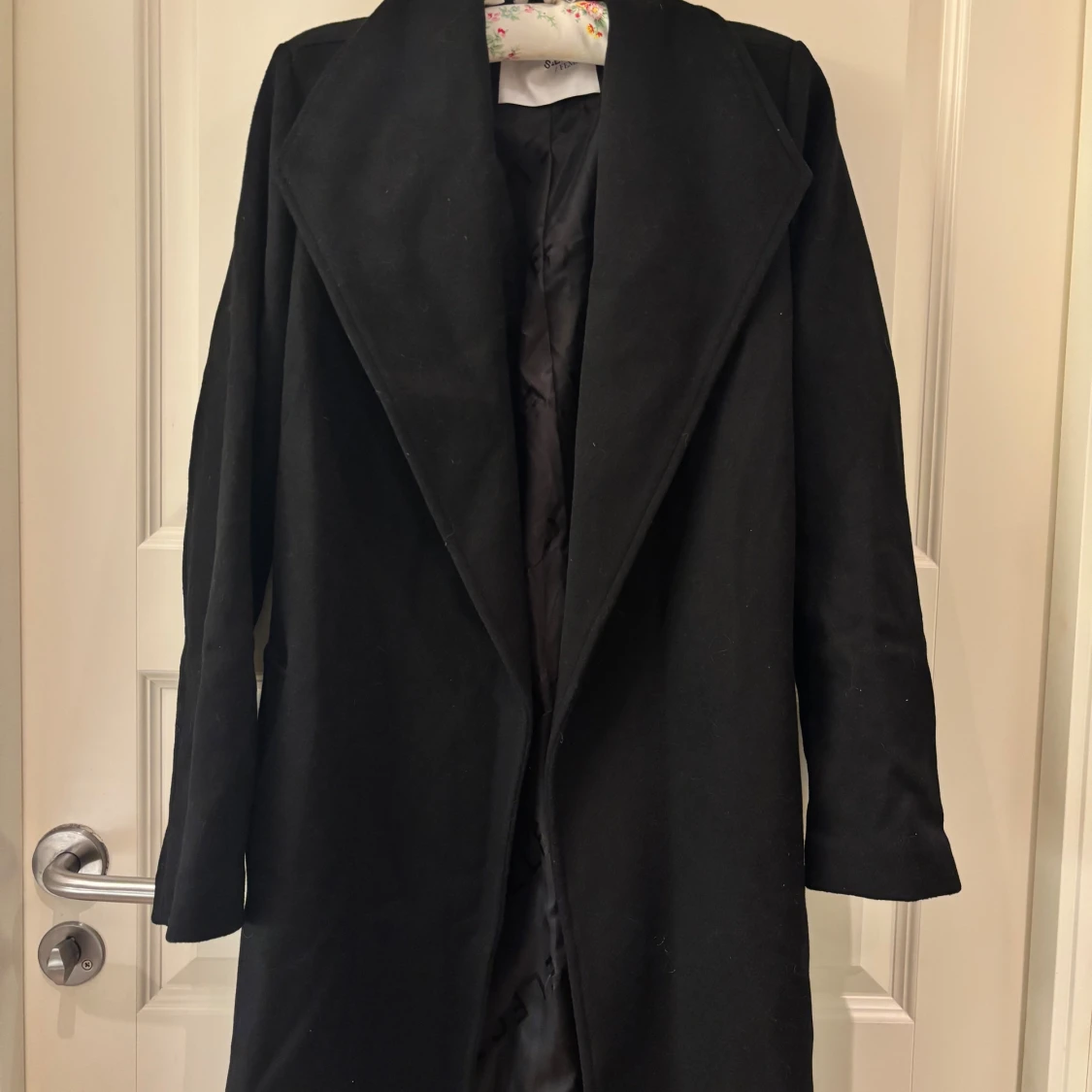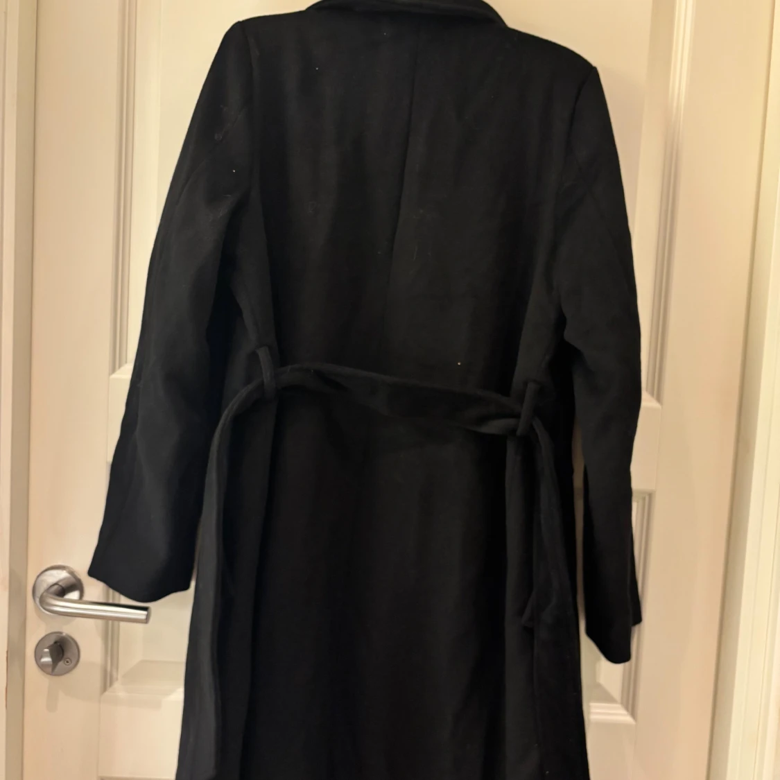 Stilren svart kappa från Selected Femme med bred krage och bälte i midjan. Långärmad och med klassisk rak passform, perfekt för dig som gillar minimalistisk look. Materialet är mjukt och har en snygg matt finish. Aldrig använd. Nypris 2199 kr. Hör av er om ni har några funderingar!💗