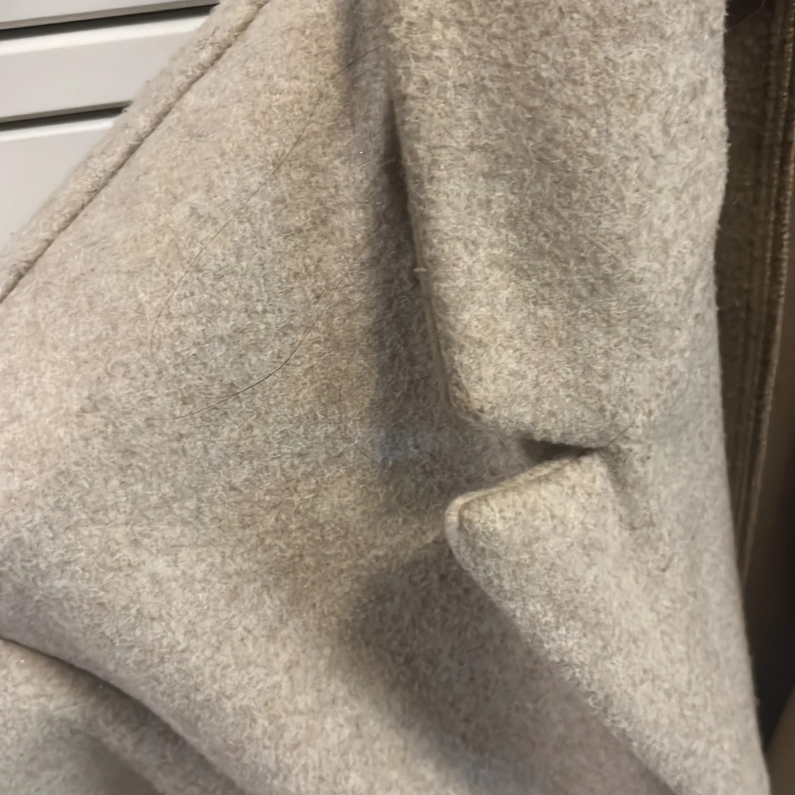 Beige lång kappa, oversized. Något nopprig som dessa typer av kappor kan bli, men annars fint skick.