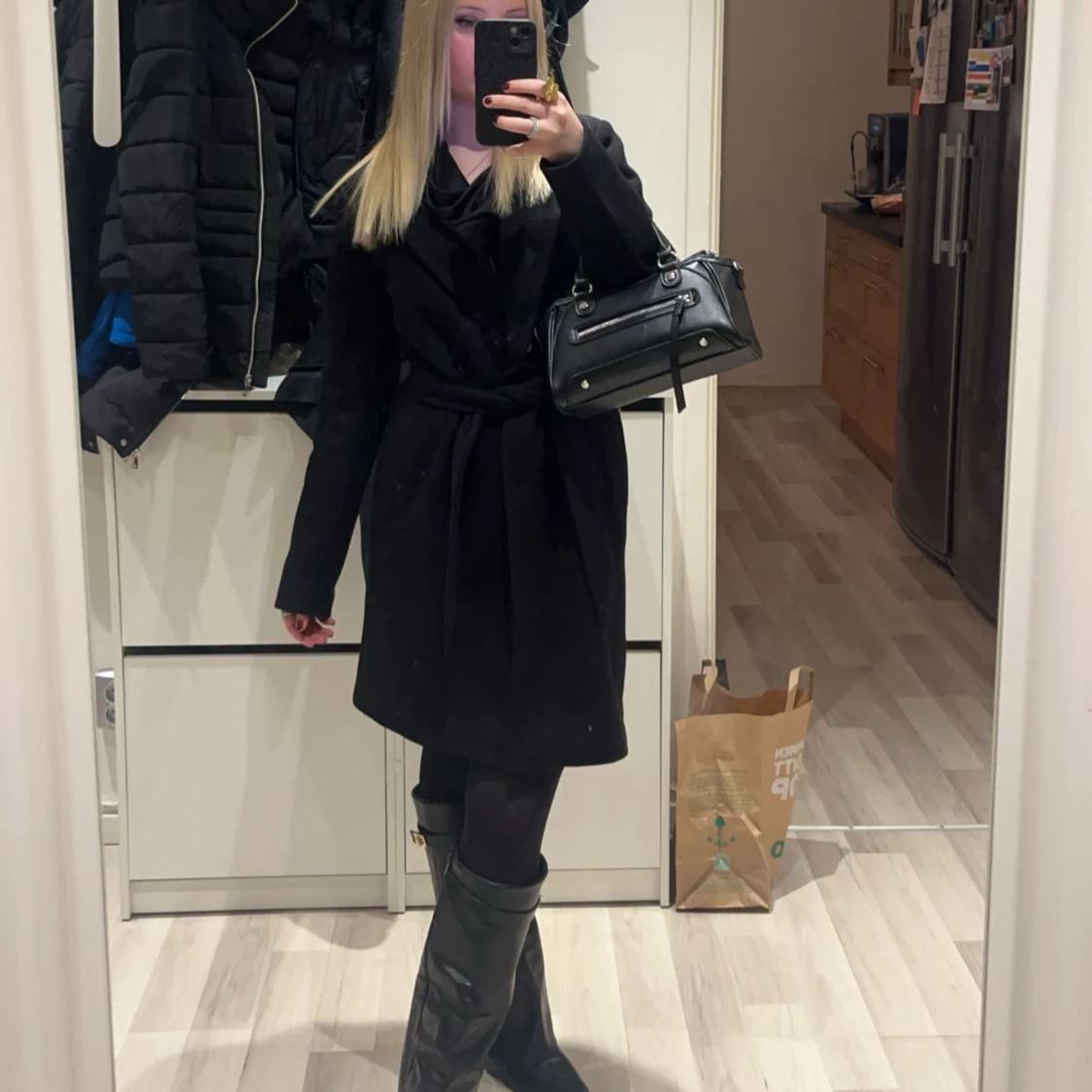 Svart lång superfin kappa som funkar utmärkt inför hösten, skoldagar men även utekvällar. Köpt för några år sedan. Från vila