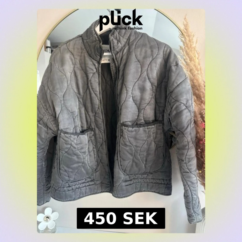 Grå jacka från Zara med vågigt mönster, två stora fickor framtill och hög krage. Jackan har en avslappnad passform och stängs med dragkedja. Perfekt för lager på lager under höst och vår.