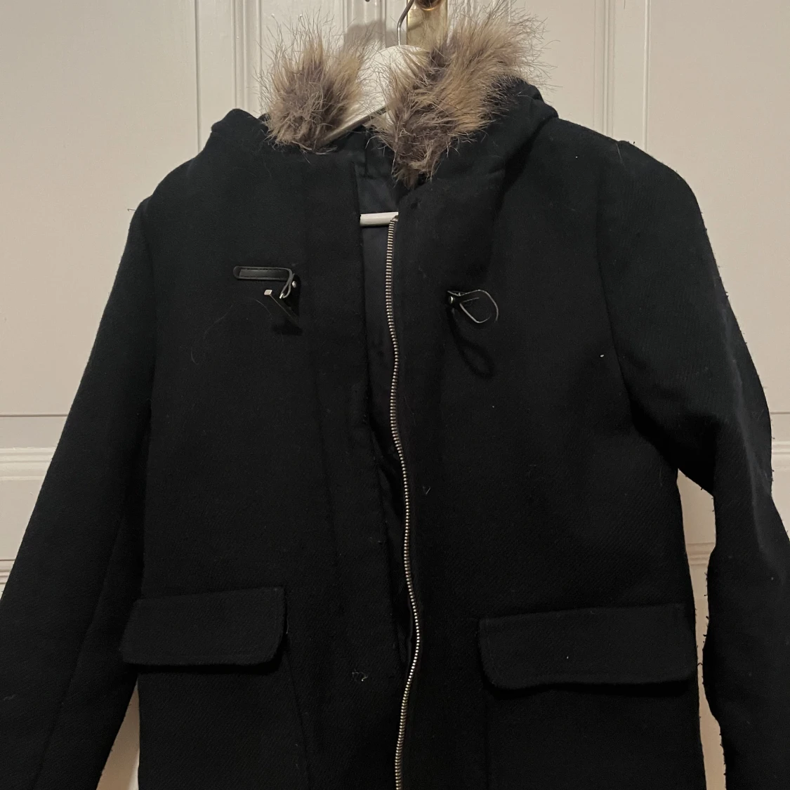 En mörkblå kort kappa från Zaras barnavdelning. I bra skick, och i storlek 11-12 år, 158-164 cm.