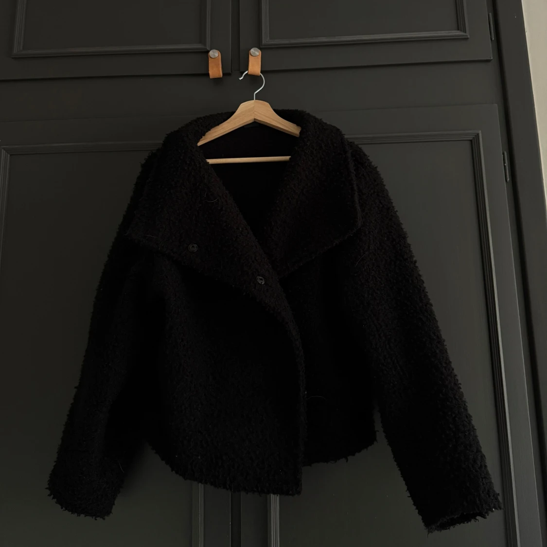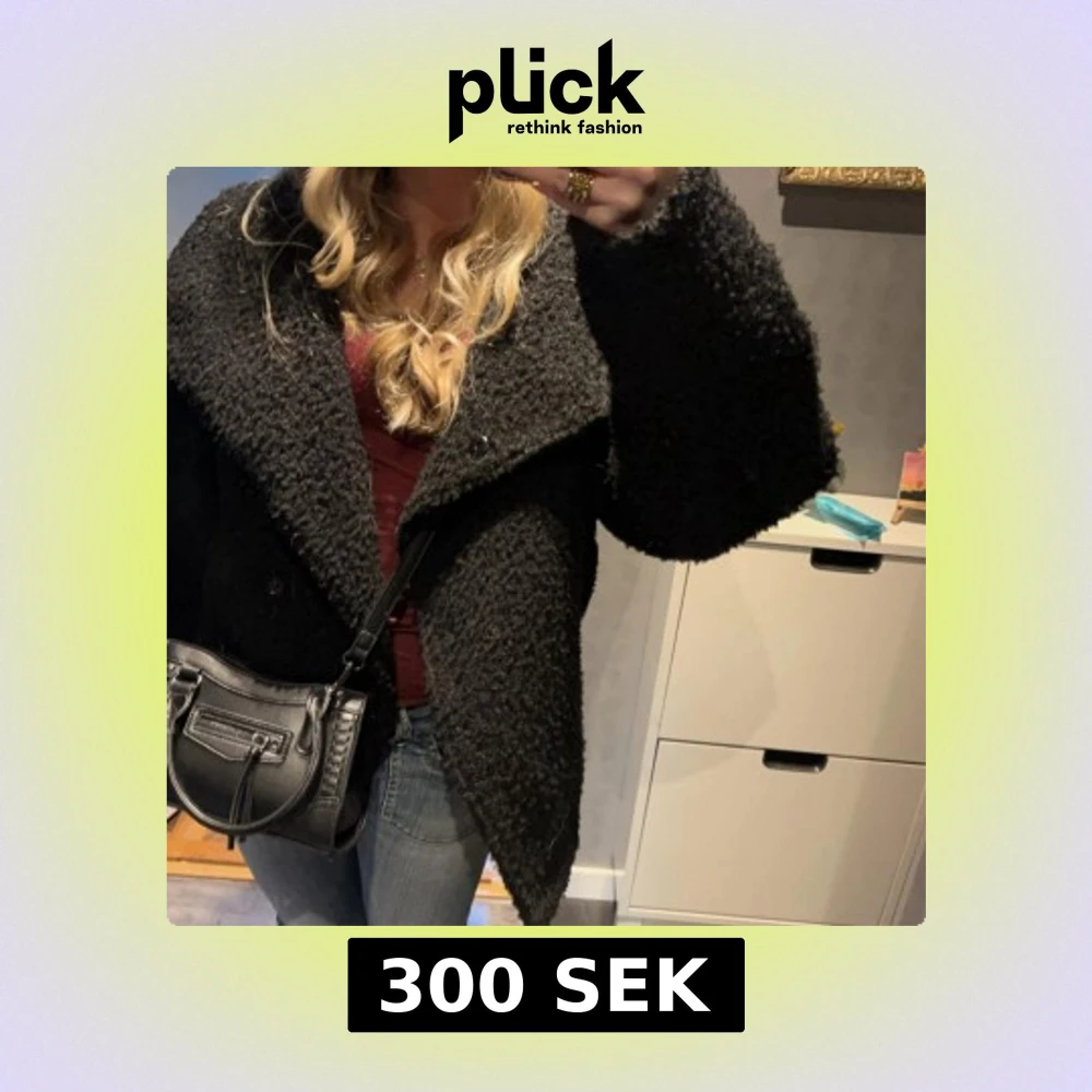 Mysig svart teddyjacka från Gina Tricot i storlek XS. Den är lite oversizeo och har två fickor i sidorna. Den är använd under 1 höst och 1 vår men är ändå i bra skick. Nypris: 600kr (tror jag)