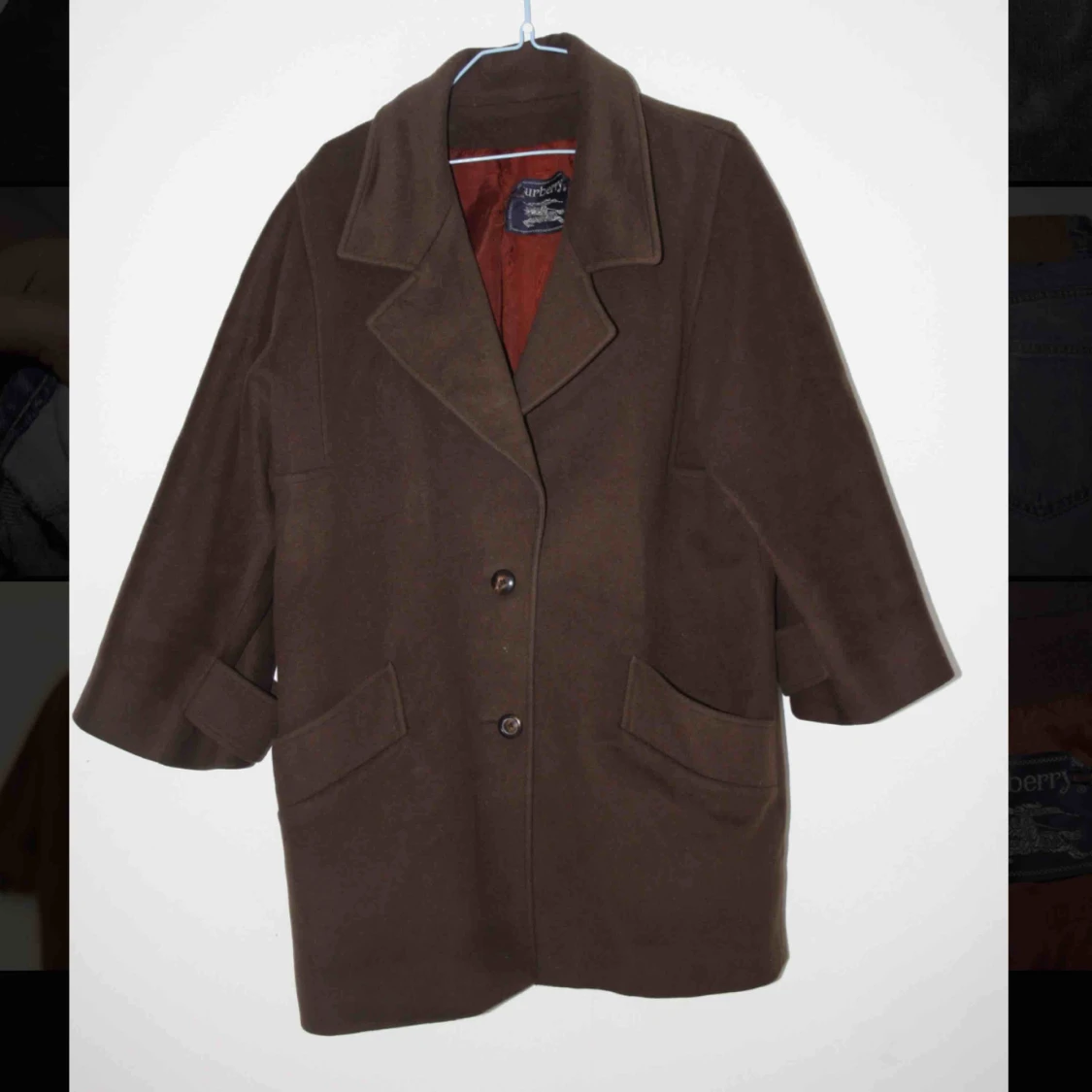 Burberry kappa i ull och Kashmir. Söt, ser inte så ”maskulin” ut som på bilden. Sitter oversize på mig, S-M. Den tar slut på mitten av låret. Se sista bild slitage Möts i Stockholm eller så betalar köparen för frakt