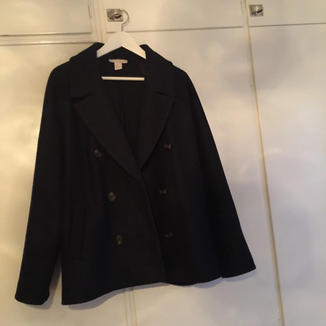 Oversized kortare kappa från hm. Mörk mörkblå. Som ny