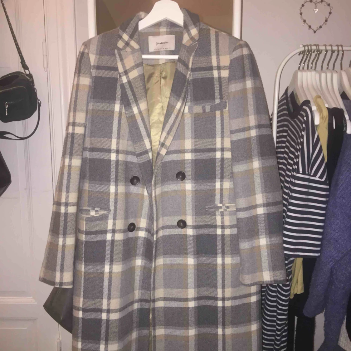 En rutig stradivarius kappa! Bara använd några få gånger, säljer för att jag aldrig använder den! Alltså i fint skick :) köpt för 800, säljer för 600!