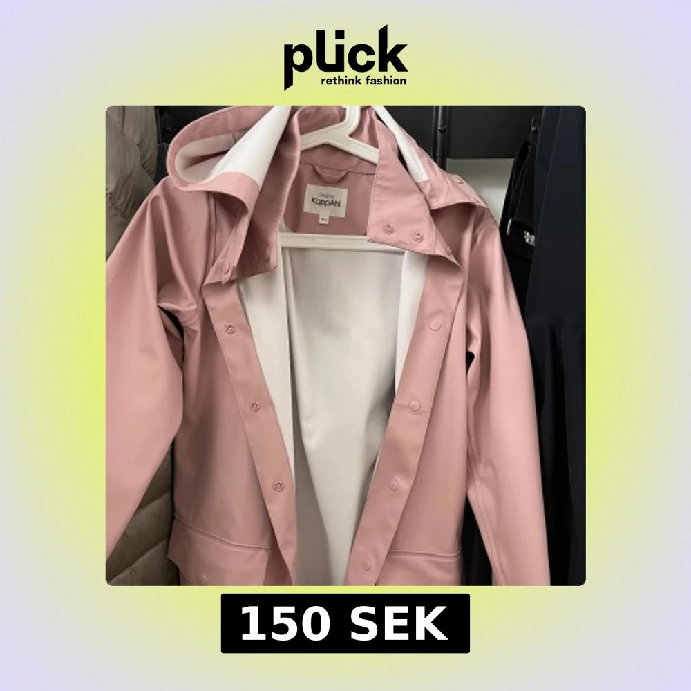 Snygg oanvänd ljusrosa regnjacka, jackan har stora fickor och är perfekt för regniga dagar. Enkel och stilren design som funkar till alla outfits😊