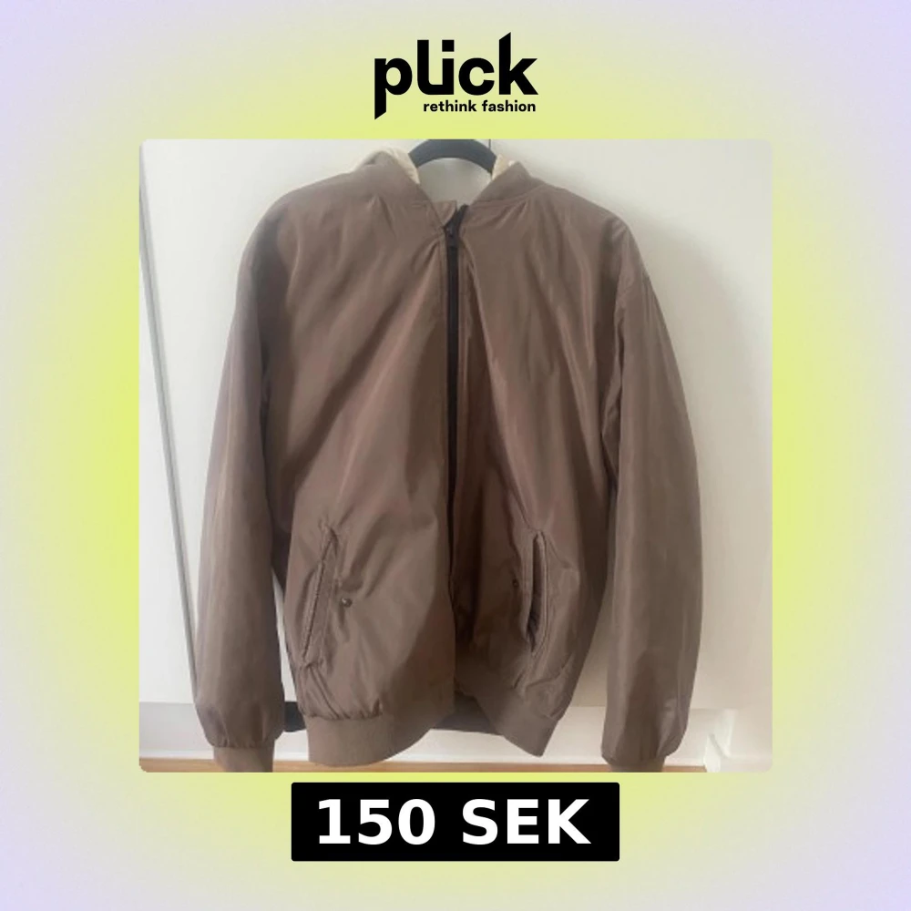 Snygg beige bomberjacka från Kappahl med avtagbar ljus huva. Jackan har ribbade muddar, dragkedja framtill och två fickor med tryckknapp. Perfekt för dig som gillar en clean och stilren look med streetvibe.