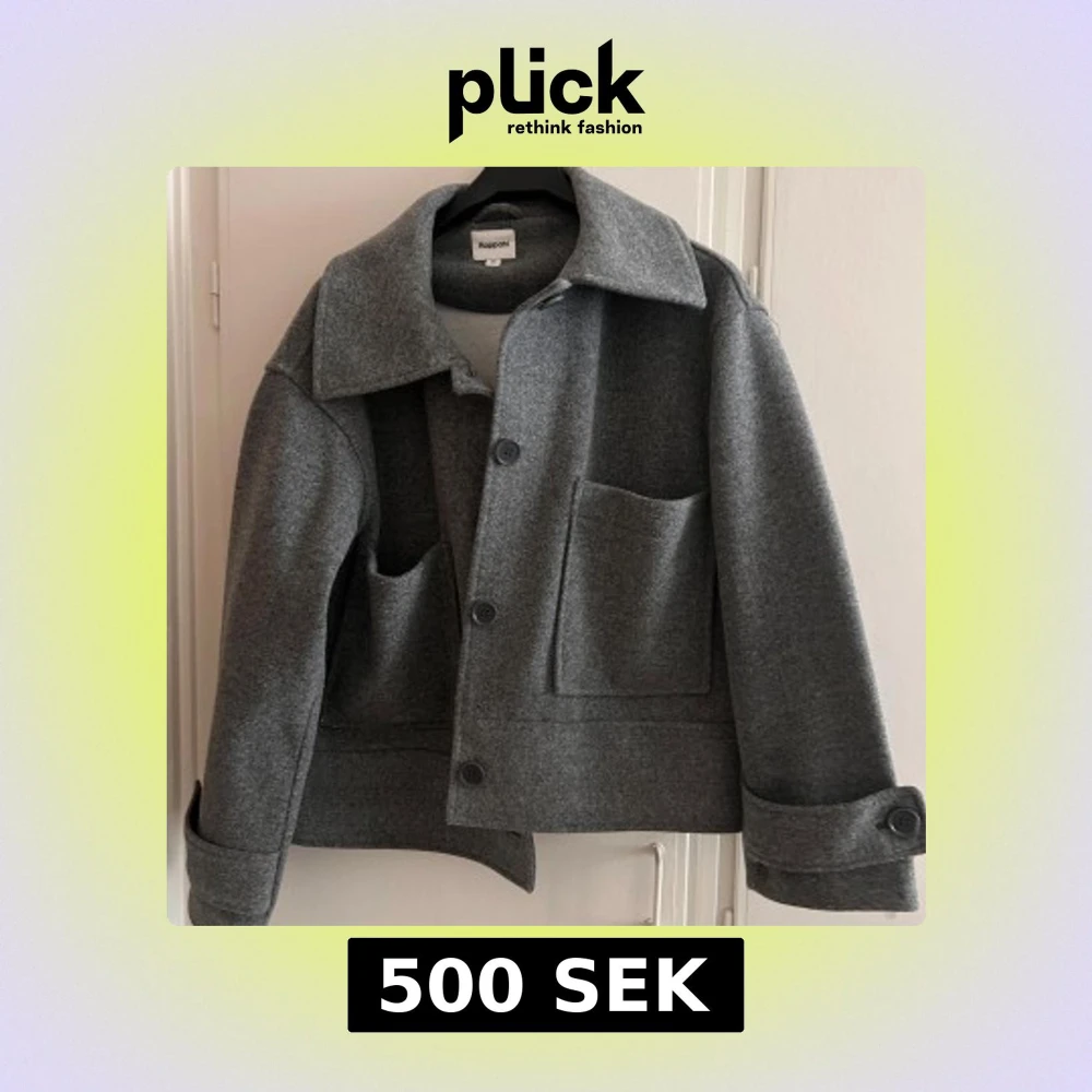 Snygg grå ulljacka från Kappahl med stora fickor och knappar framtill. Jackan har en klassisk krage och långa ärmar med knappar vid ärmsluten. Perfekt för kyligare dagar. Andvänt typ en gång nu pris 800kr