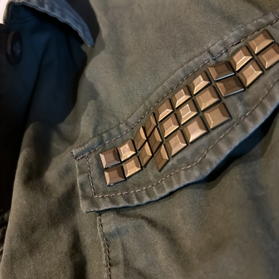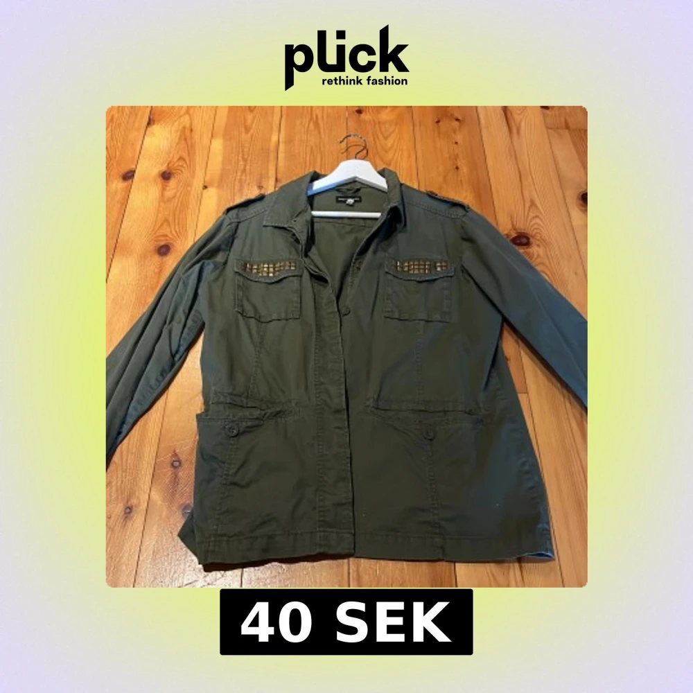 Snygg olivgrön jacka från KappAhl med coola nitar på bröstfickorna. Jackan har långa ärmar och knäppning fram. Perfekt för en avslappnad stil med en touch av edge.